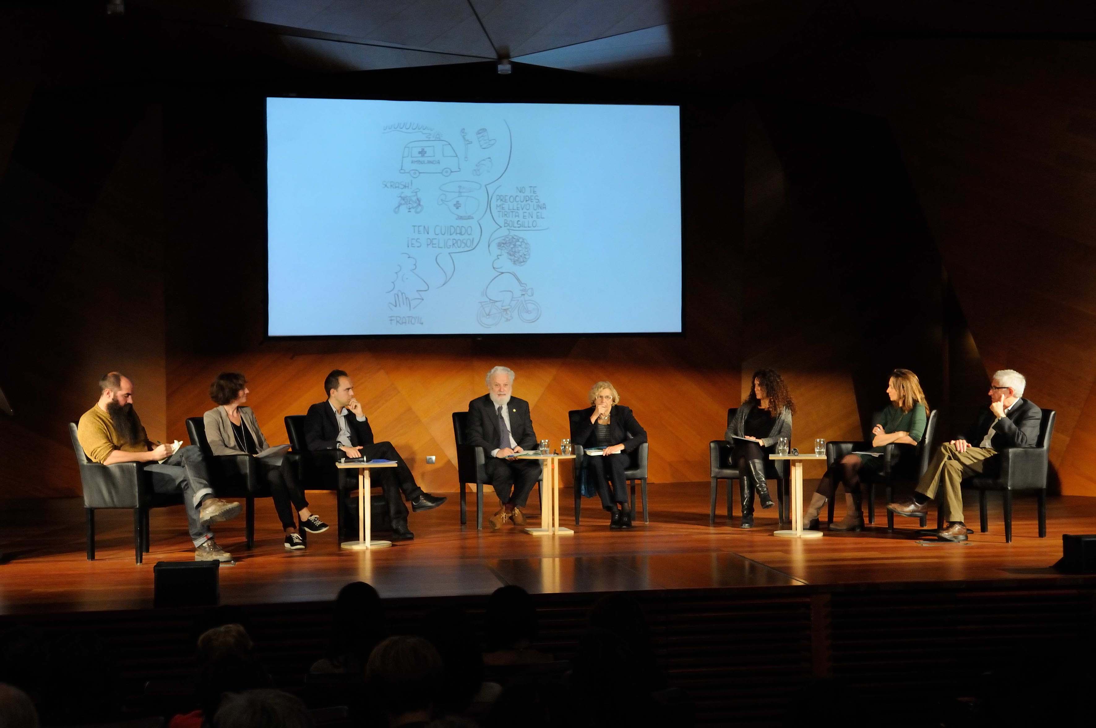 El debate ha sido presentado por la delegada de Cultura y Deportes, Celia Mayer, que ha comentado: "El arte y la cultura deben ser las herramientas para mejorar la vida en las ciudades". Por su parte, Tonucci ha destacado la pérdida de la presencia de niños, adultos y discapacitados en las ciudades por las barreras arquitectónicas y el aumento del miedo a los obstáculos urbanísticos como el tráfico. Esta pérdida de contacto con el tejido urbano de la ciudad afecta psicológicamente a los más débiles, como los niños, al perder autonomía, capacidad de decisión y disturbios de atención. Una ciudad justa y responsable debe favorecer que los niños jueguen en la calle para descargar toda la energía que generan.