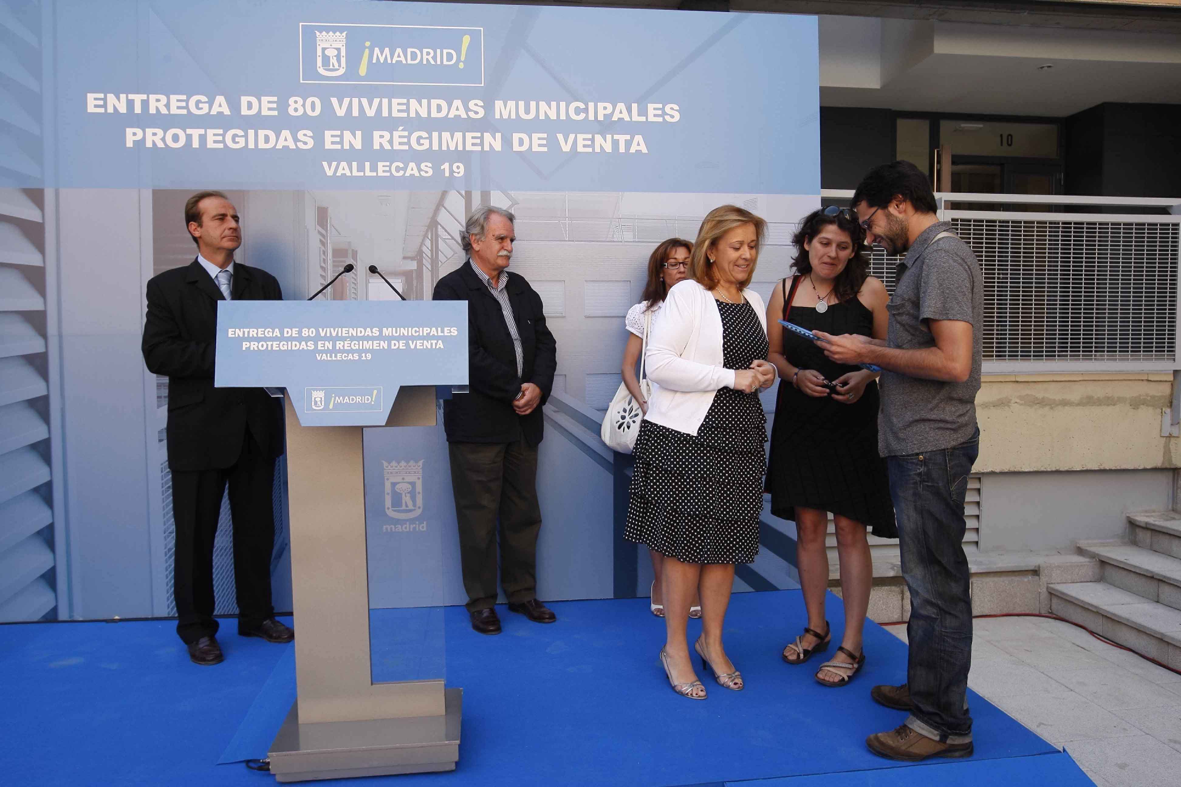 Durante el acto de entrega de llaves, la delegada de Urbanismo y Vivienda hizo hincapié en que el esfuerzo solidario de los madrileños ha hecho posible que el Ayuntamiento ponga al alcance de los adjudicatarios de esta promoción, viviendas de calidad a precios tres veces inferiores a los de mercado. Así, el precio de venta de un piso de un dormitorio y 40´92 metros cuadrados es de 76.061 euros; de dos dormitorios y 50´84 metros cuadrados, de 92.171 euros, y de tres dormitorios y 64´92 metros cuadrados, de 133.121 euros. En todos los casos, estos precios incluyen una plaza de garaje.