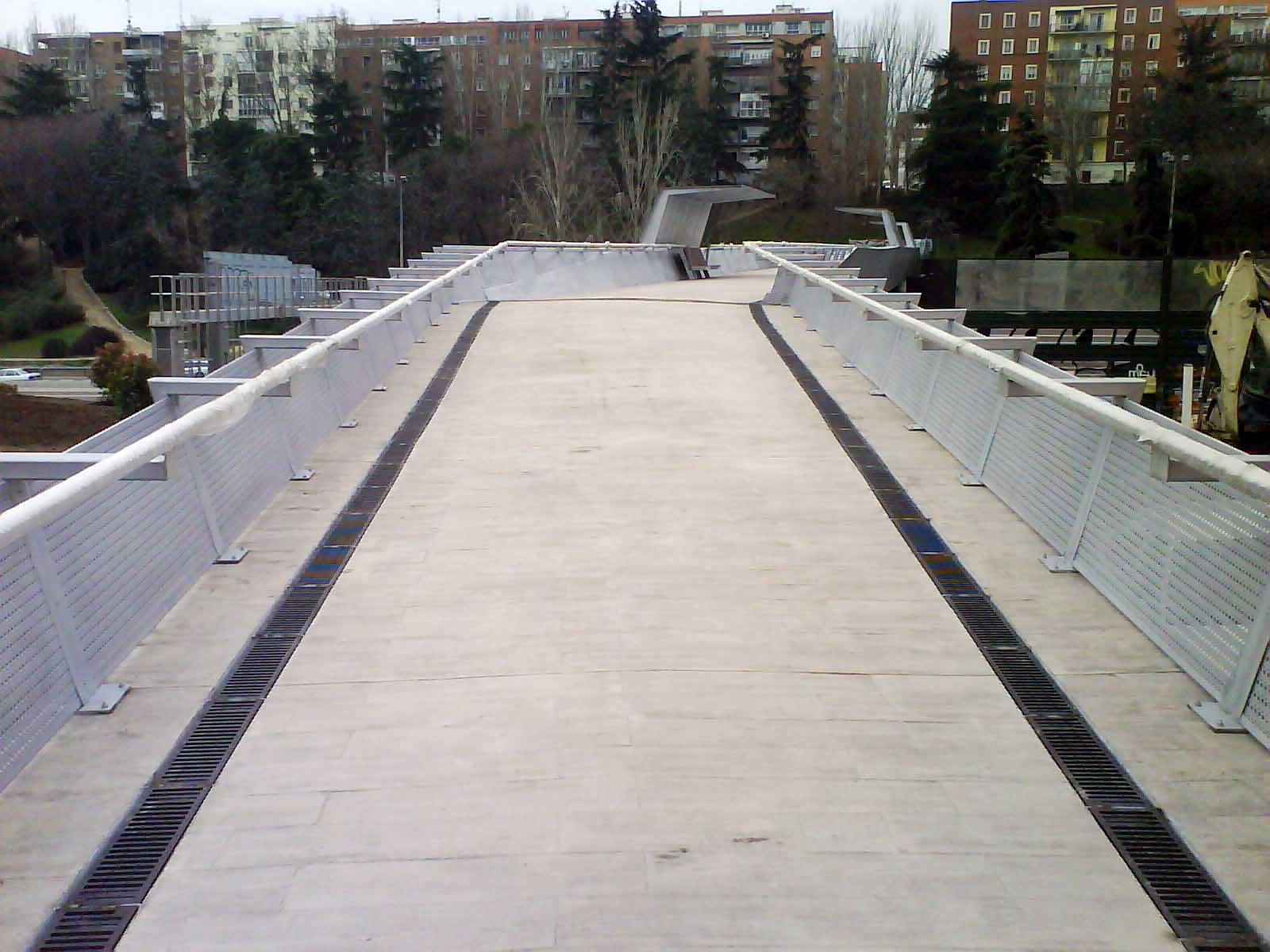 - Es una de las seis pasarelas construidas por el Área de Gobierno de Obras y Espacios Públicos en el arco este de la Calle 30