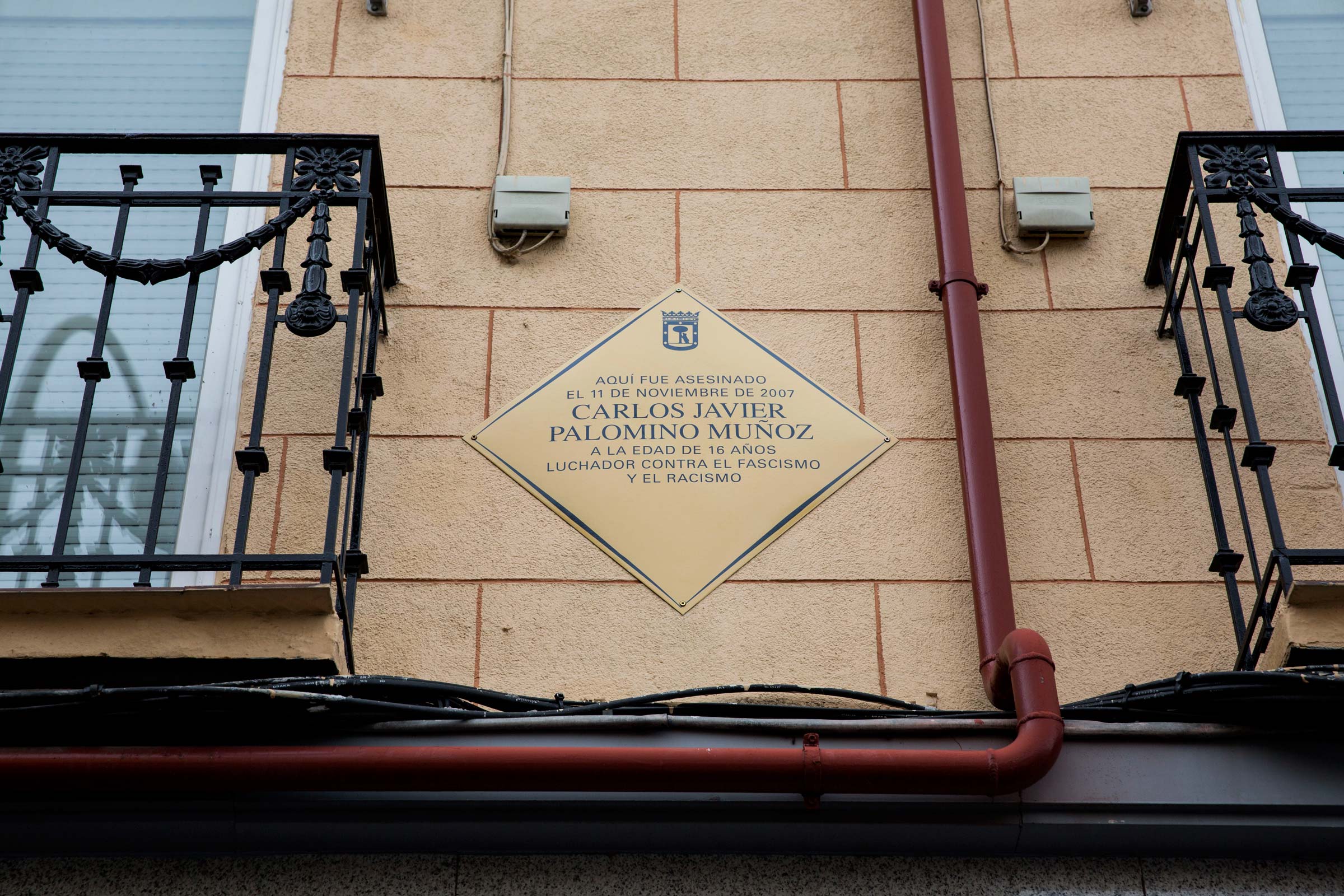 La placa recuerda el asesinato del joven Carlos Javier Palomino Muñoz, que murió el 11 de noviembre de 2007 en lo que fue considerado por la justicia como “un asesinato con agravante de discriminación ideológica”.