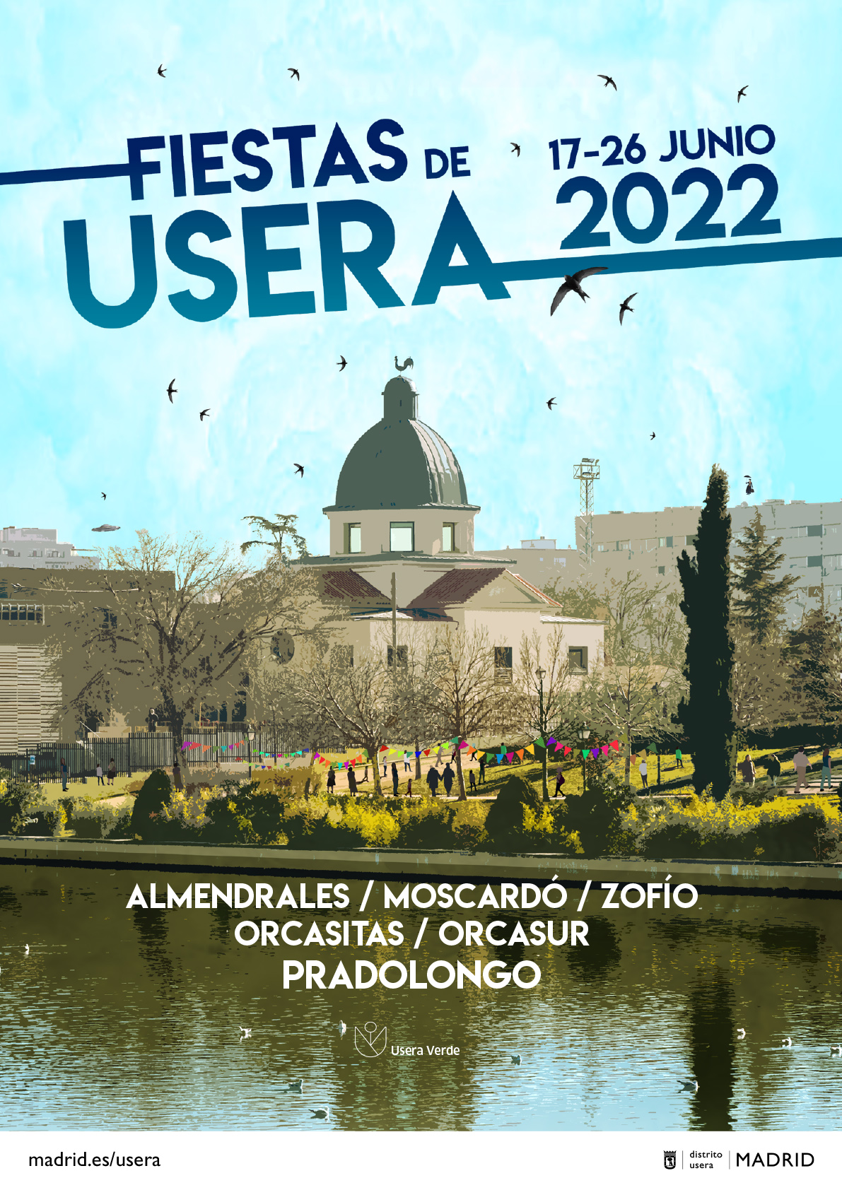 Será una celebración con un pregonero de excepción, Okuda, el artista cántabro de fama internacional que acaba de instalar una galería-taller en este distrito con el que tiene un vínculo muy especial. No en vano, su huella va a estar en los murales del río Manzanares y de la biblioteca de San Fermín, obras que van a situar a Usera como referente internacional de arte urbano. El pregón será el jueves 23 de junio en el templete del parque de Pradolongo, a partir de las 21:30 h.