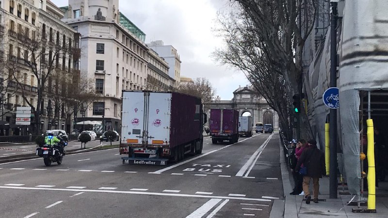 Esta mañana en la plaza de Cibeles, tras la lectura de un manifiesto, Mauricio Valiente, tercer teniente de alcalde, ha cortado la cinta de salida, de tres camiones que ya se dirigen hacia el Sahara con material humanitario, procedente de la generosidad de los madrileños, que han recogido 18 asociaciones amigas del pueblo saharaui durante casi dos meses. La carga ha llenado los tres camiones que hoy partían hacia el puerto de Alicante para ser donada a la Media Luna Roja Saharaui que, en los campamentos, se encarga de almacenar y repartir entre la población refugiada. El Ayuntamiento de Madrid ha querido apoyar de esta forma la solidaridad hacia el pueblo saharaui.