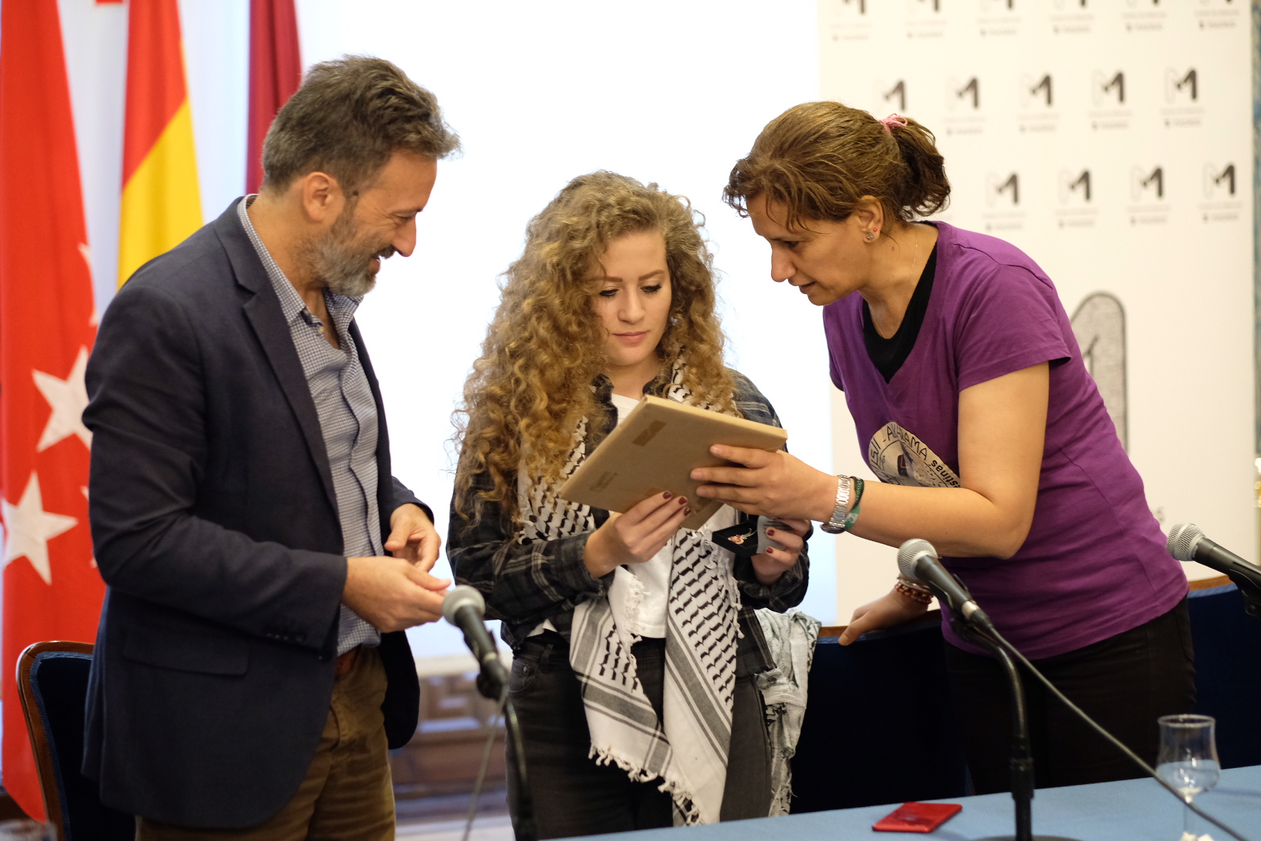 Ahed Tamini ha cerrado el acto señalando que agradece las muestras de solidaridad y el apoyo por parte del Ayuntamiento de Madrid y ha pedido que “toda esa gente que me apoyó cuando yo estaba en la cárcel, siga levantando la voz, por los 350 niños y niñas que actualmente permanecen presos”./