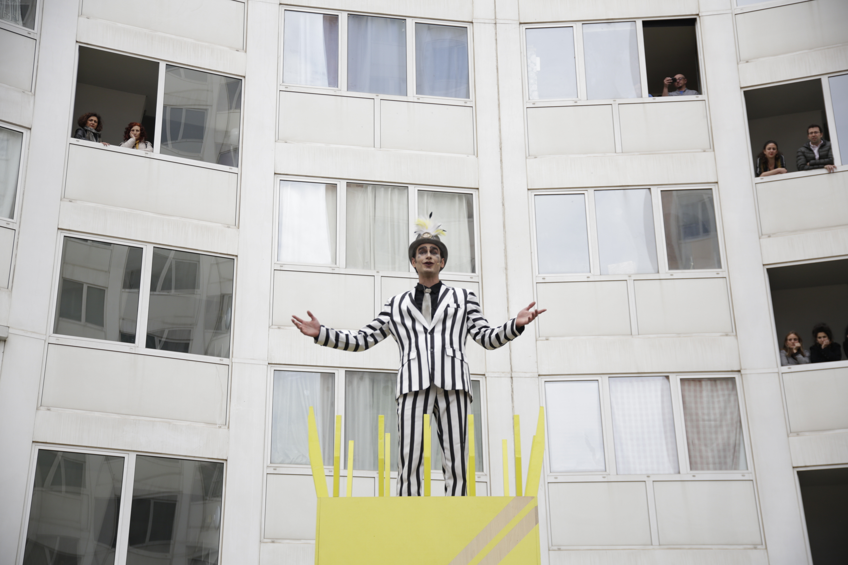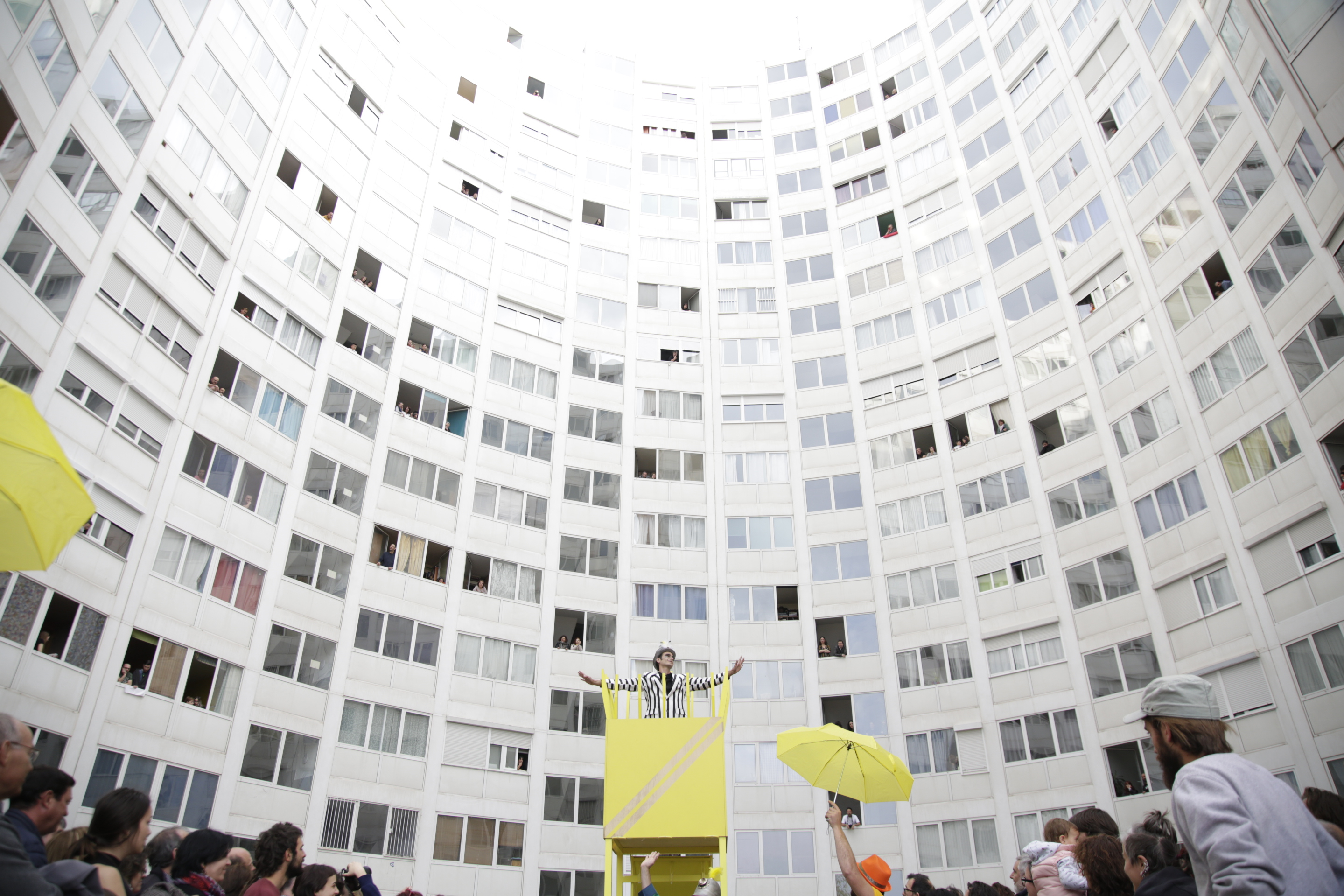 Con grandes dosis de humor e ironía, Kópera expuso el problema de la habitabilidad ligado a la especulación inmobiliaria, apoyándose en la memoria colectiva del barrio y la lucha comunitaria. La Torre San José y el Mirador del Payaso Fofó, dos lugares emblemáticos del distrito situados en el punto más elevado de la Colonia de San José, fueron los espacios elegidos como escenario para la representación. /