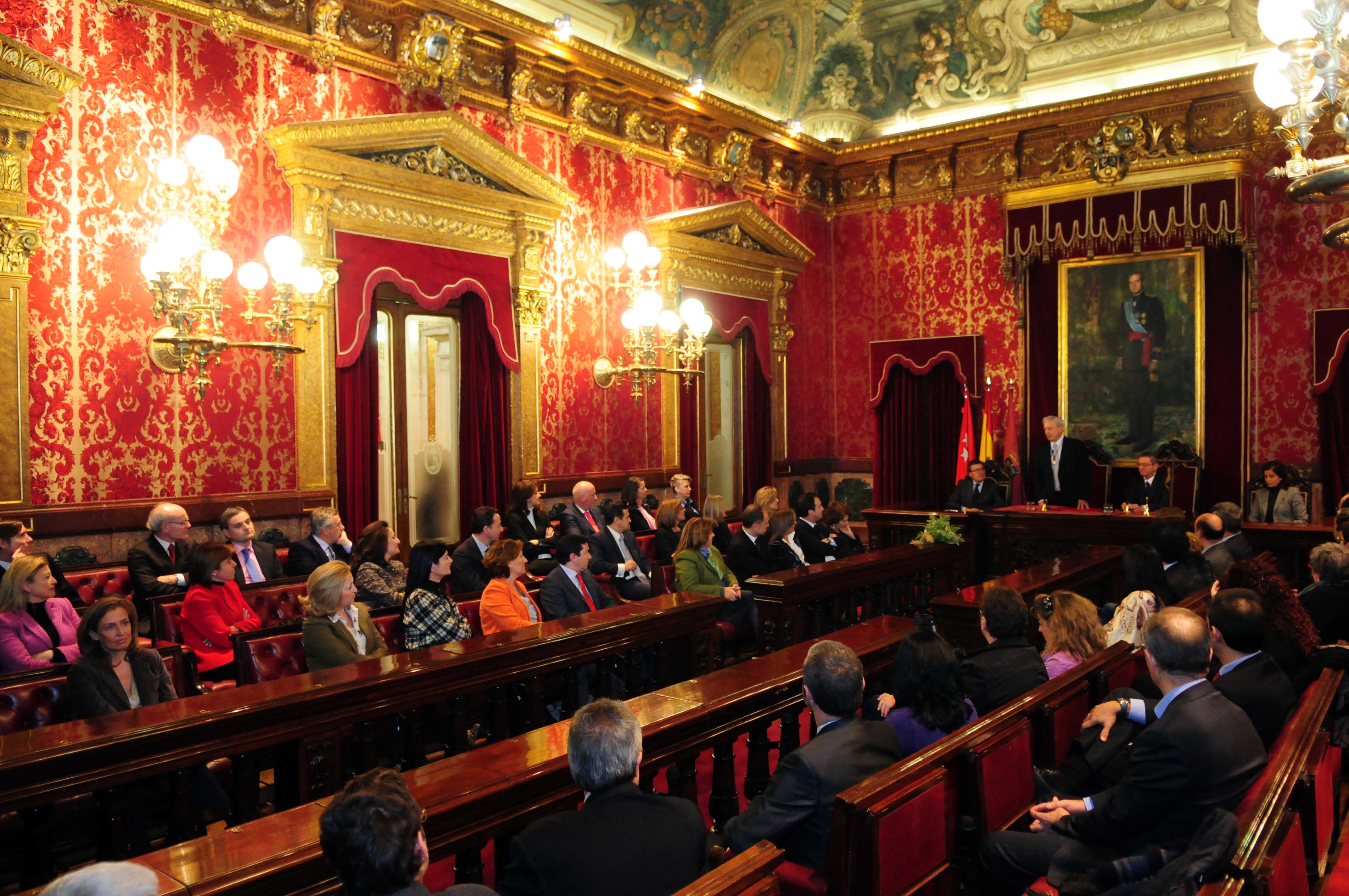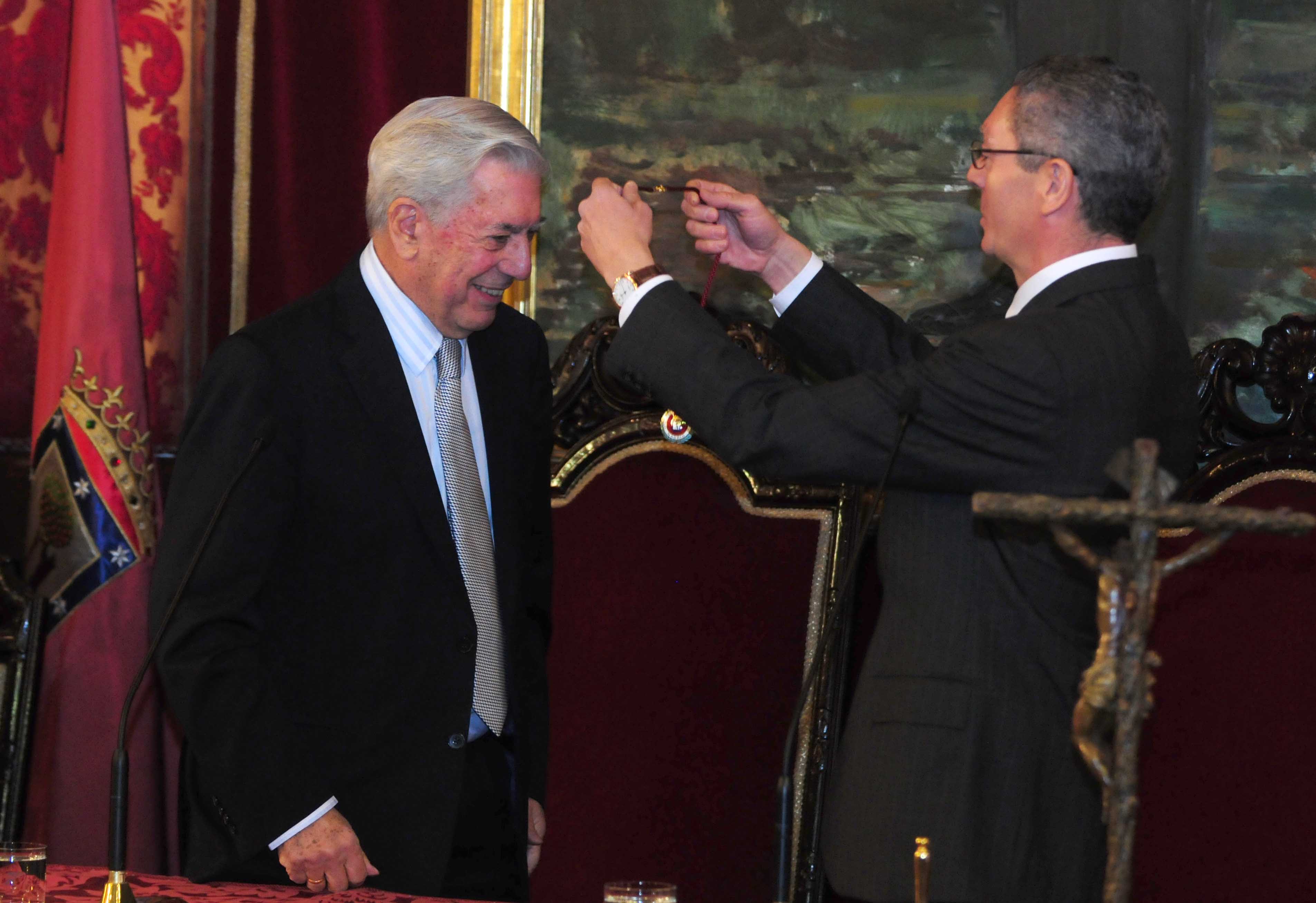 Mario Vargas Llosa y Alberto Ruiz-Gallardón, en el Pleno en el que se ha nombrado al Premio Nobel Hijo Adoptivo de Madrid