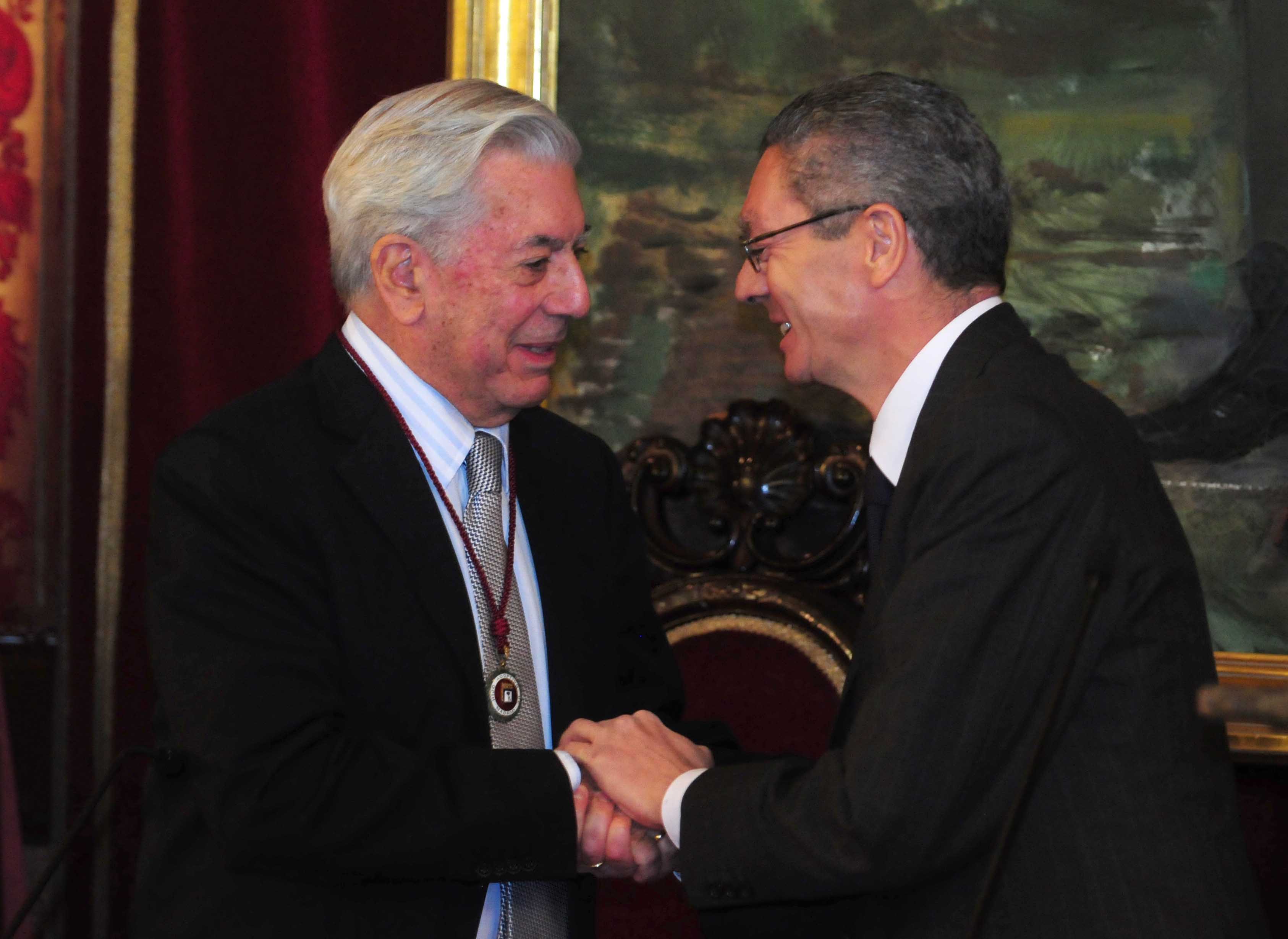 Mario Vargas Llosa ha recibido esta mañana el título de Hijo Adoptivo de Madrid, de manos del alcalde Alberto Ruiz-Gallardón. Ha sido durante un Pleno extraordinario, celebrado en la Casa de la Villa. El último Premio Nobel de Literatura, peruano, español y ante todo universal, suma a su abultado palmarés, el entrañable reconocimiento de una ciudad a la que está estrechamente ligado.