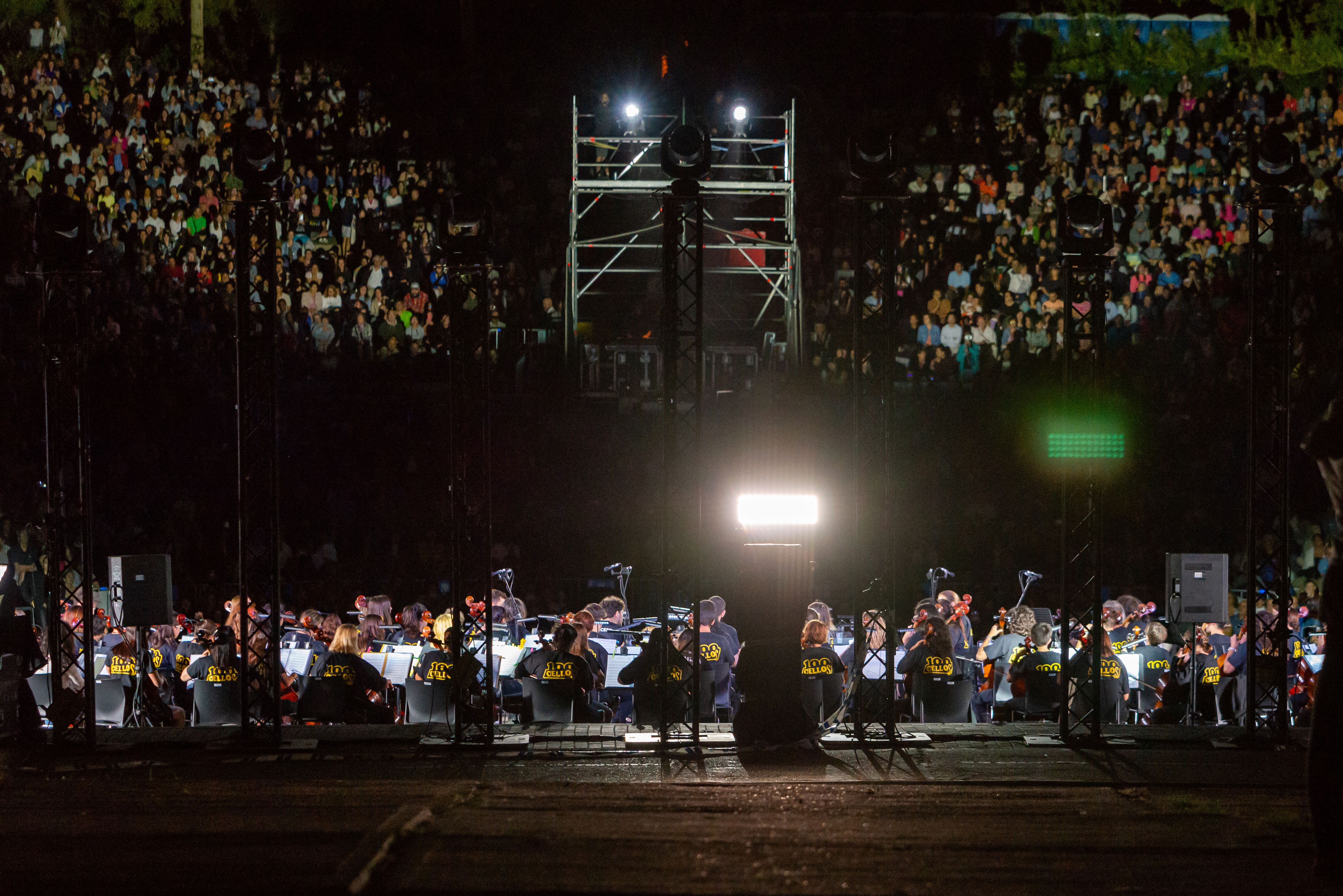 El Auditorio del parque Enrique Tierno Galván acogió anoche la última actividad programada en el marco de la 39ª edición de Veranos de la Villa, el festival organizado por el Área de Cultura, Turismo y Deporte. Como broche final, 14.000 personas disfrutaron de la actuación de esta orquesta abierta y ‘transversal’, compuesta por grandes profesionales, solistas famosos, estudiantes, aficionados y apasionados de la música y dirigida por los músicos italianos Giovanni Sollima y Enrico Melozzi. Un broche de oro para este festival que este año ha conseguido aumentar considerablemente la cifra de espectadores.