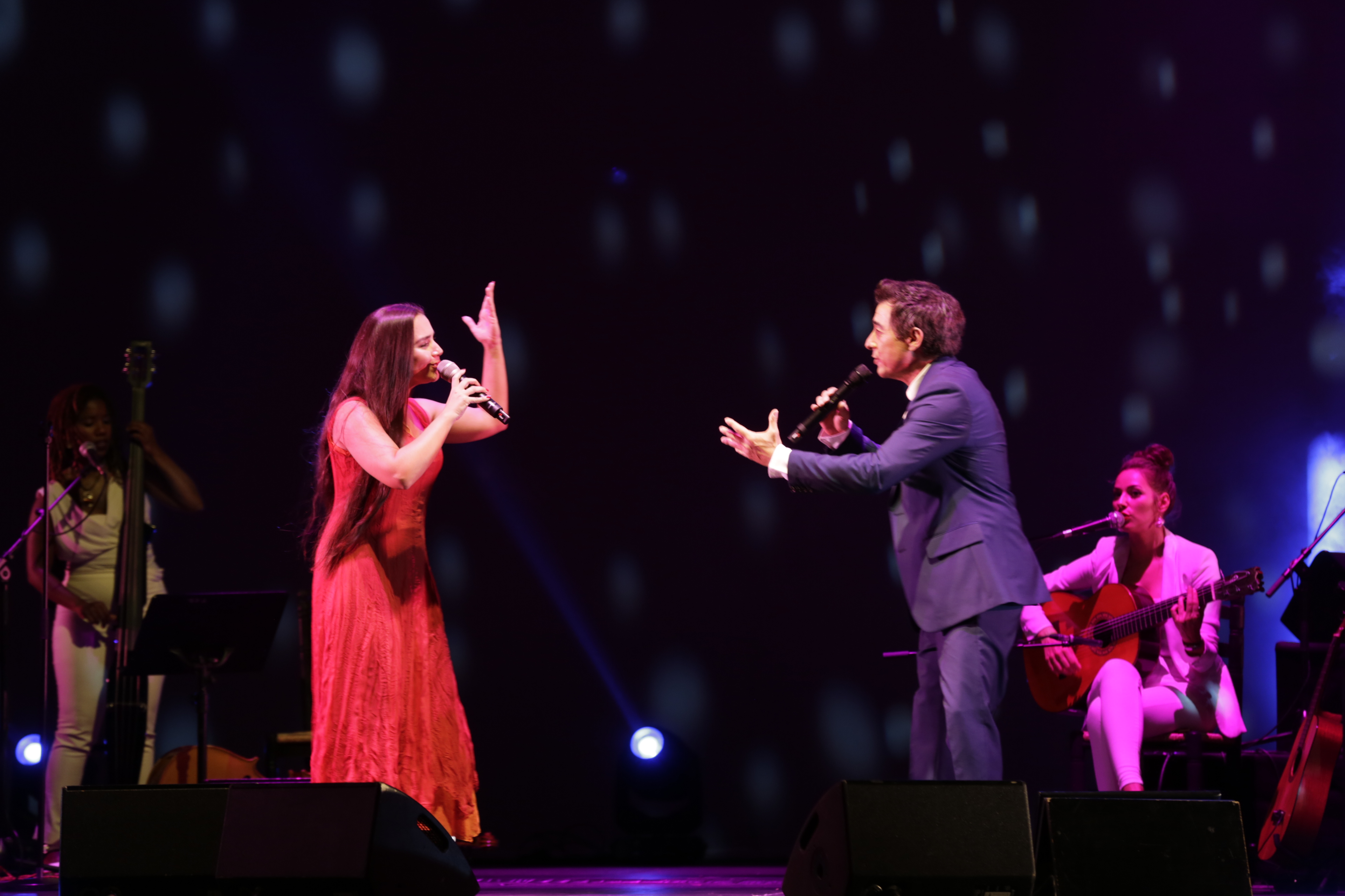Juan Valderrama arrancó aplausos y lágrimas a un público emocionado con su propuesta Mujeres de carne y verso en el Patio de Conde Duque en Veranos de la Villa, programado por el Área de Cultura del Ayuntamiento de Madrid. Acompañado de una banda de maestras instrumentistas y con artistas invitadas como Rozalén, Cristina Pato, María Toledo, Las Migas y Miriam Cantero, los espectadores vivieron la emoción de 26 siglos de poesía en femenino.