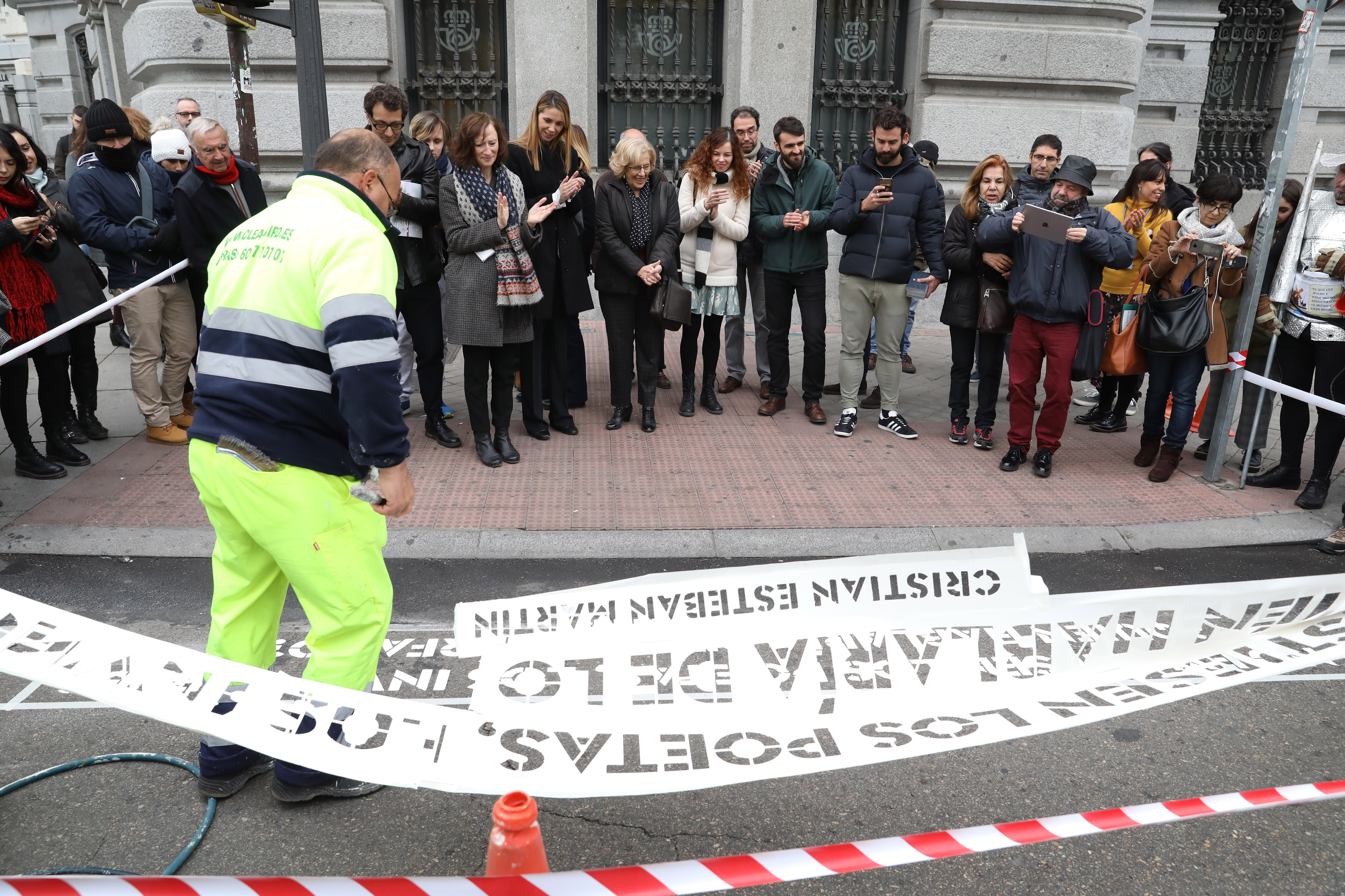 - La alcaldesa de Madrid ha presentado la web ‘Versos al paso’, una guía digital que permite hacer recorridos poéticos por Madrid y descubrir los miles de versos del proyecto pintados en los 21 distritos de la ciudad