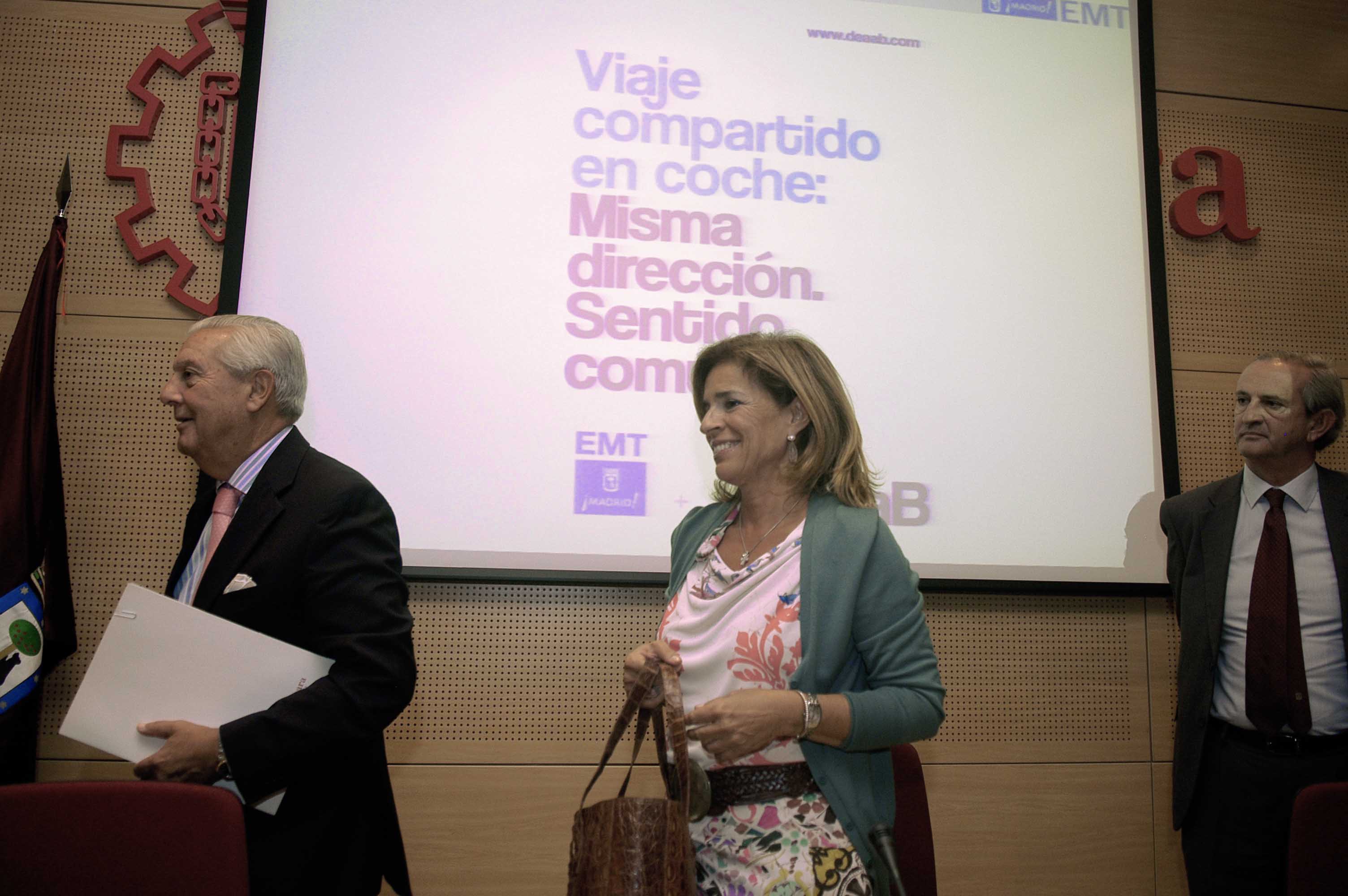 Imágenes de la presentación del nuevo proyecto "De A a B", puesto en marcha por el Ayuntamiento de Madrid en colaboración con varias empresas para fomentar el viaje compartido al trabajo en coche. La delegada de Medio Ambiente y Movilidad, Ana Botella, ha destacado los beneficios que la iniciativa, en pruebas, tiene para todos los implicados, trabajadores, empresas y la propia ciudad.