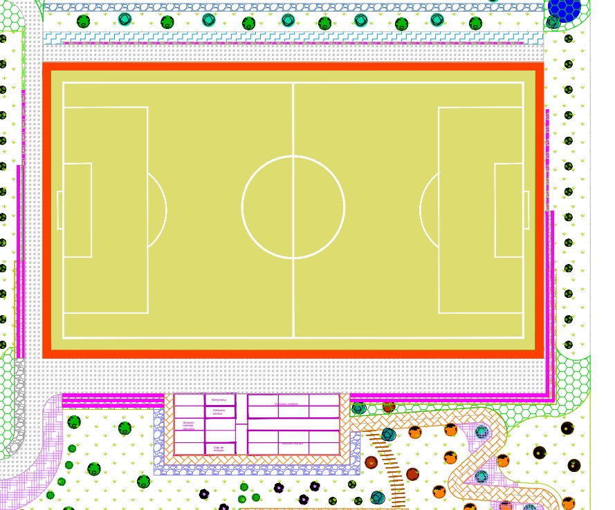 - Será un campo de fútbol 11 con dos de fútbol 7 cruzados y contará con vestuarios, gradas, aseos, iluminación, etc.