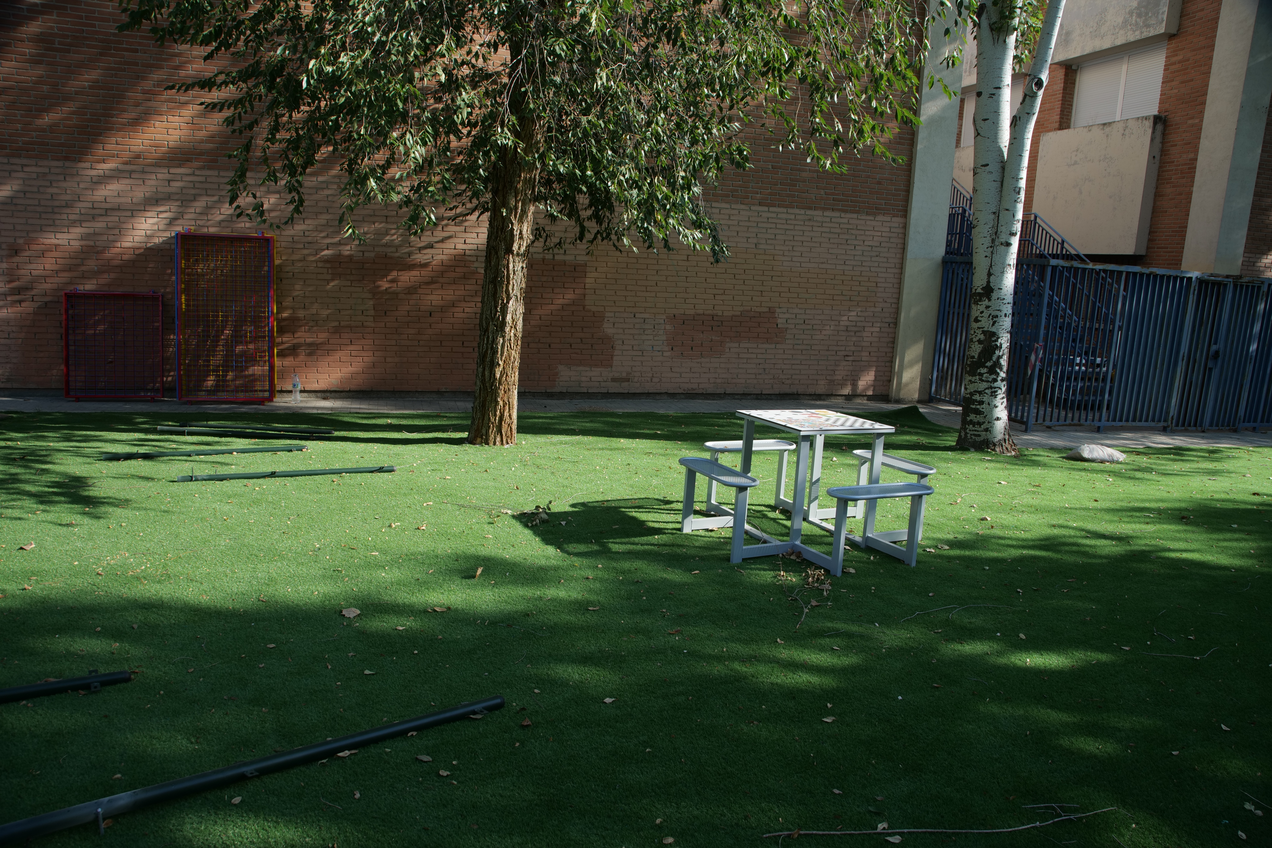 Con este proyecto se acondiciona el patio sureste y la zona baja, que presentaban un mal estado de conservación, y en la zona más próxima al gimnasio se va a disponer de un nuevo saneamiento que reduzca el embalsamiento de agua. Además, se sustituirán algunos de los juegos infantiles, se instalará otra zona de juegos, se plantarán nuevos árboles para conseguir más espacio de sombra, se sustituirán las praderas por césped artificial y se creará una pista deportiva. Por último, en la zona bajo los árboles se hará un camino de servicio.