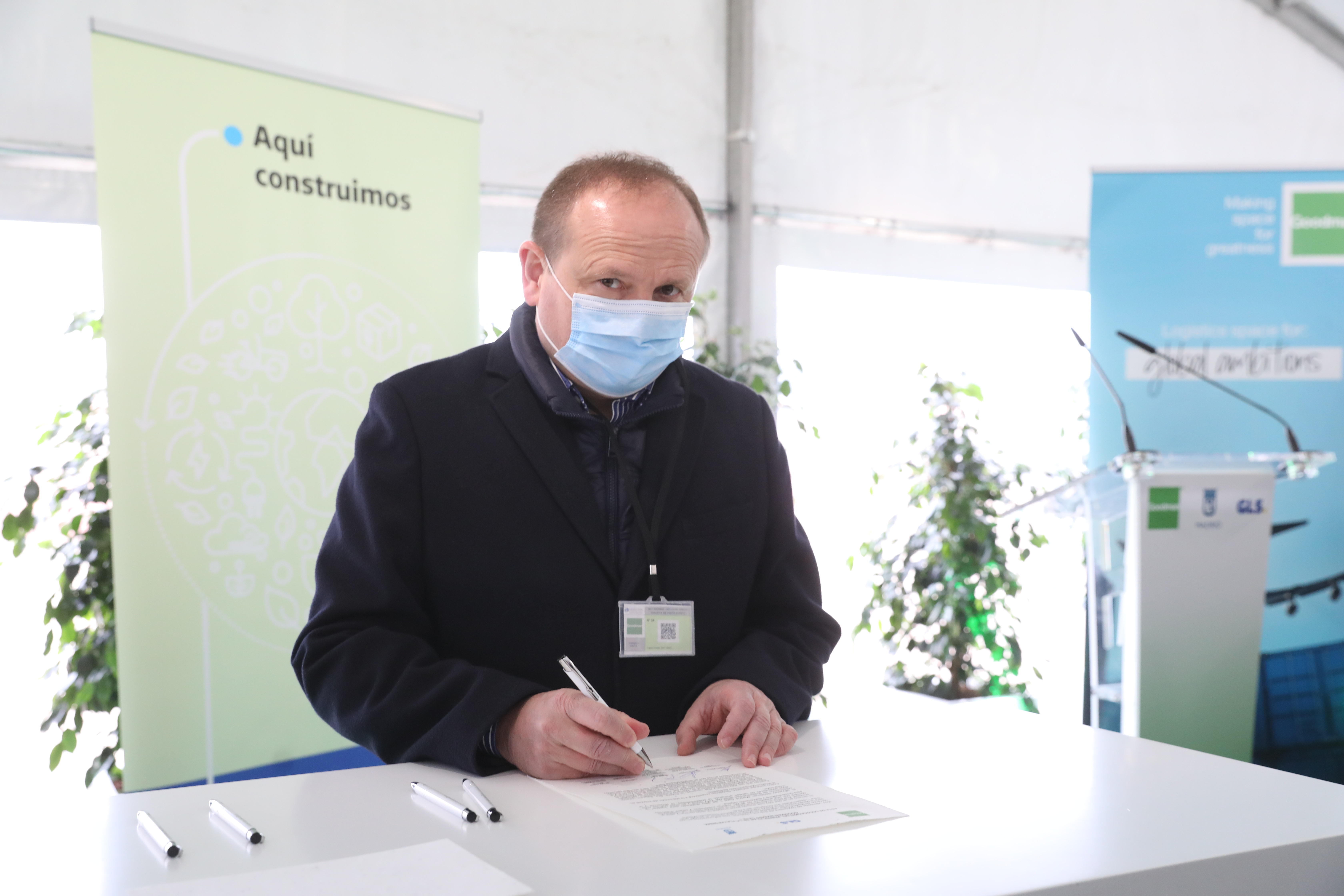 El primero de los tres edificios que conformarán este hub logístico ya está terminado y hoy se inicia la construcción de la segunda instalación, que albergará la sede central en la península ibérica del proveedor logístico multinacional GLS. Serán más de 33.000 m2 de superficie a tan solo diez minutos del centro de la ciudad y próximos al aeropuerto Adolfo Suárez Madrid-Barajas. /