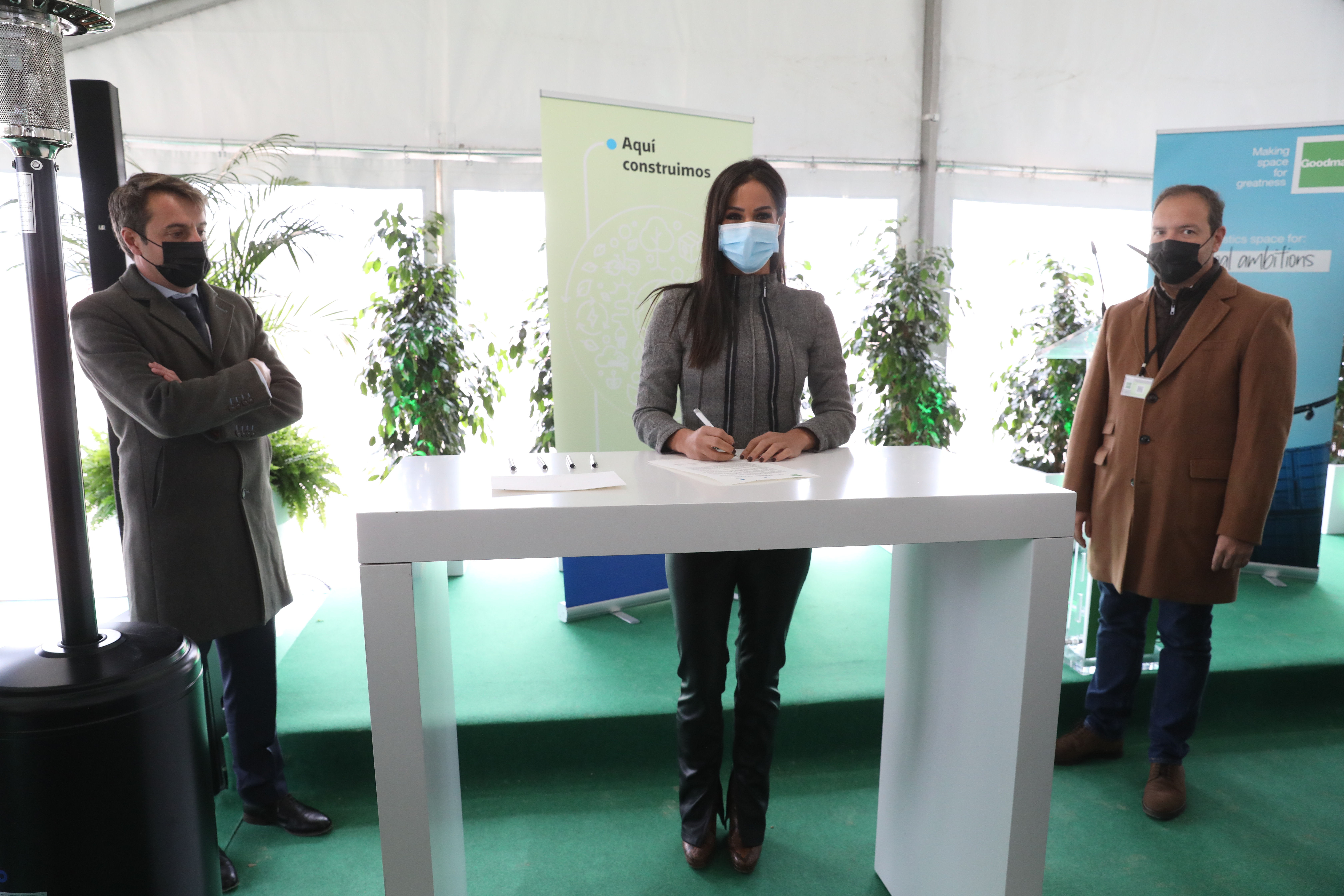 La vicealcaldesa de Madrid, Begoña Villacís, ha destacado hoy que “Madrid se sitúa a la vanguardia de la logística del futuro, atrayendo inversión y generando empleo en un sector clave y en pleno desarrollo, al tiempo que se revitaliza un área estratégica para la ciudad, en desuso durante los últimos años” durante el acto de colocación de la primera piedra de una nueva plataforma logística -Goodman Madrid Gate 1- en el distrito de San Blas-Canillejas. Villacís ha estado acompañada por los delegados de Desarrollo Urbano, Mariano Fuentes, y de Economía, Innovación y Empleo, Miguel Ángel Redondo, y el concejal del distrito, Martín Casariego.