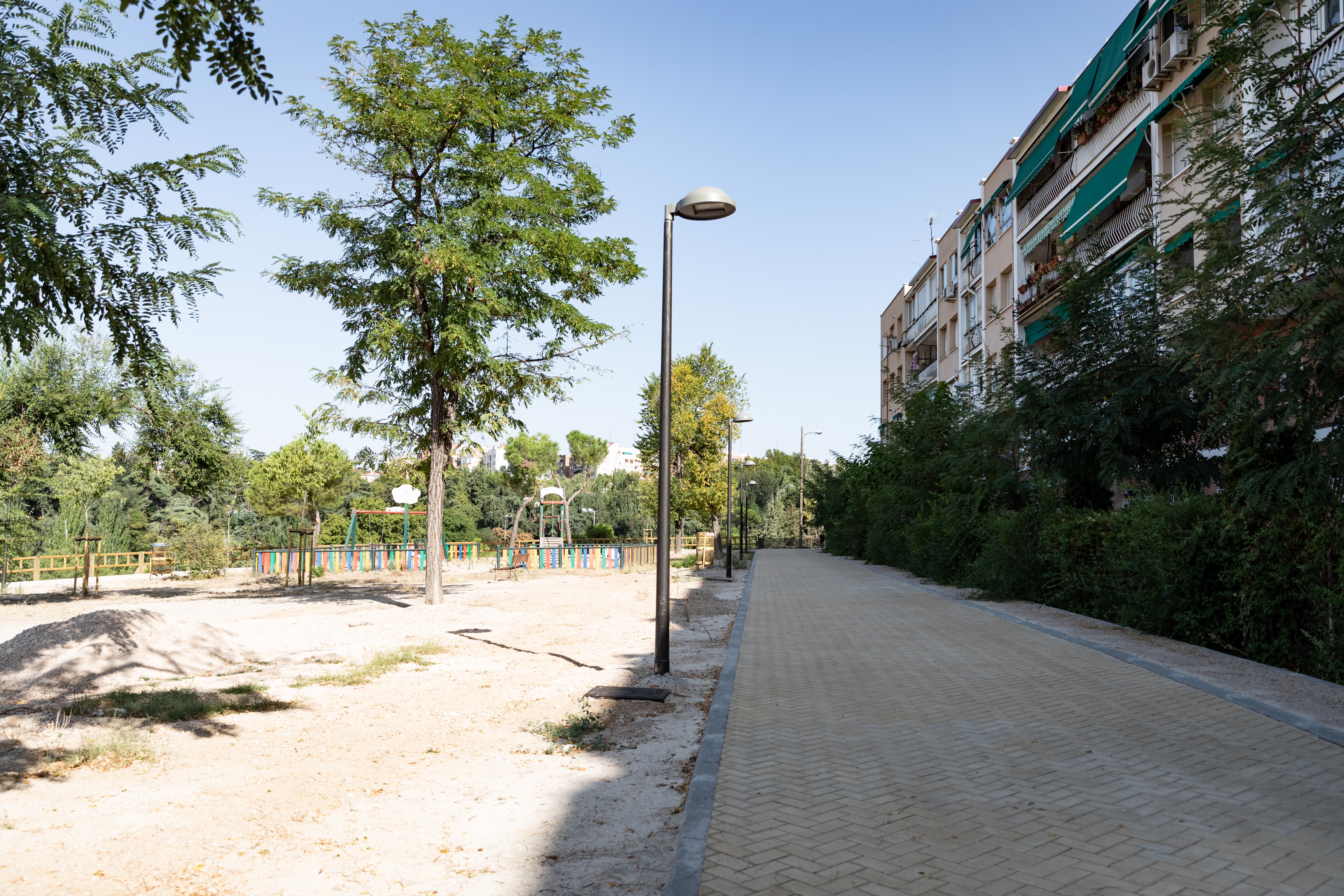 La obra de la calle de Ricardo Ortiz abarca una superficie de 26.596 m2, ha tenido un presupuesto de más de 792.000 euros y forma parte de las actuaciones que el Área de Desarrollo Urbano está llevando a cabo dentro de la estrategia ‘Madrid, isla de color’, para recuperar espacios degradados y dotarlos de zonas verdes, estanciales e itinerarios para los ciudadanos.