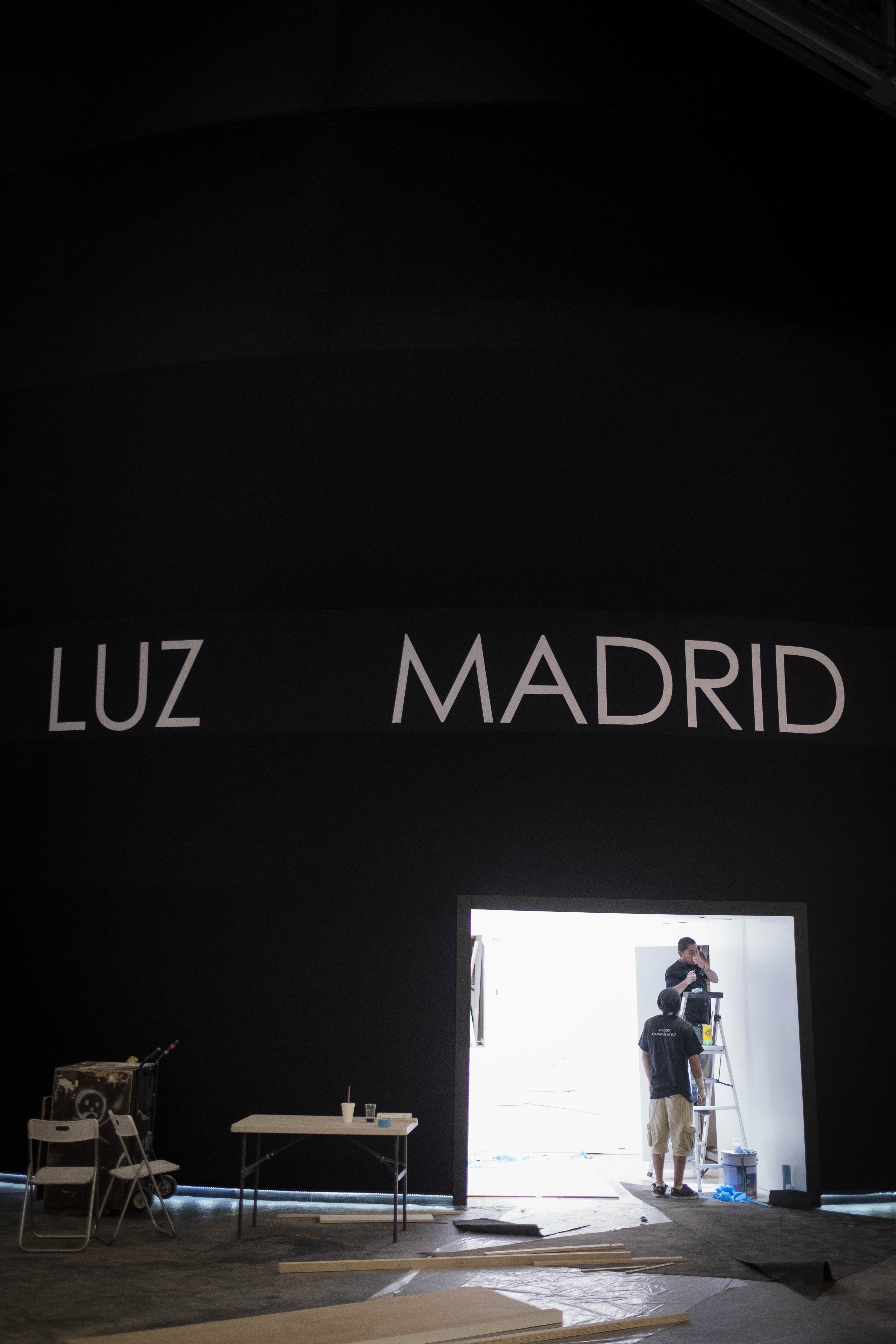 Tras la inauguración de la Feria, Carmena ha cortado la cinta que “abría” el Pabellón de Madrid”, un cilindro blanco por dentro, negro por fuera, de 21 metros de diámetro, y el techo de luz, firmado por el arquitecto Alberto Campo Baeza. Instalado a la entrada de la FIL, trata de rememorar la idea del ágora griega, del espacio compartido, de la cultura participativa. En él se desarrollará el programa literario, profesional y académico de Madrid. En las estanterías que circundan todo el interior del cilindro, una muestra de libros que los visitantes pueden leer.