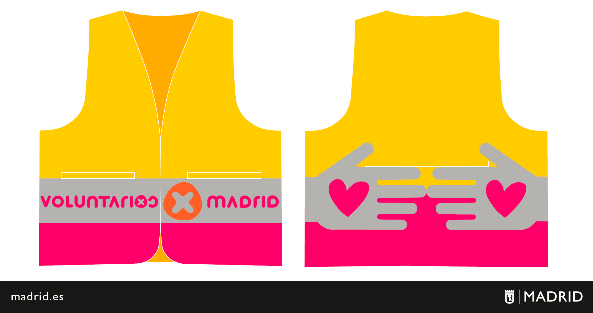 La artista ha realizado altruistamente una prenda llena de color y optimismo, un chaleco amarillo con unas manos rosas que se unen. Así se muestra una representación más viva de una ciudadanía dinámica e implicada en participar activamente para mejorar su ciudad. “El nuevo chaleco tiene dos manos y dos corazones porque es lo que os representa a vosotros” ha señalado la alcaldesa quién ha continuado explicando que las manos les representan porque los voluntarios siempre están ahí, para tender una mano a los demás, y los corazones porque el cuerpo de voluntarios y voluntarias de Madrid son capaces de saber en todo momento qué personas necesitan de su ayuda.