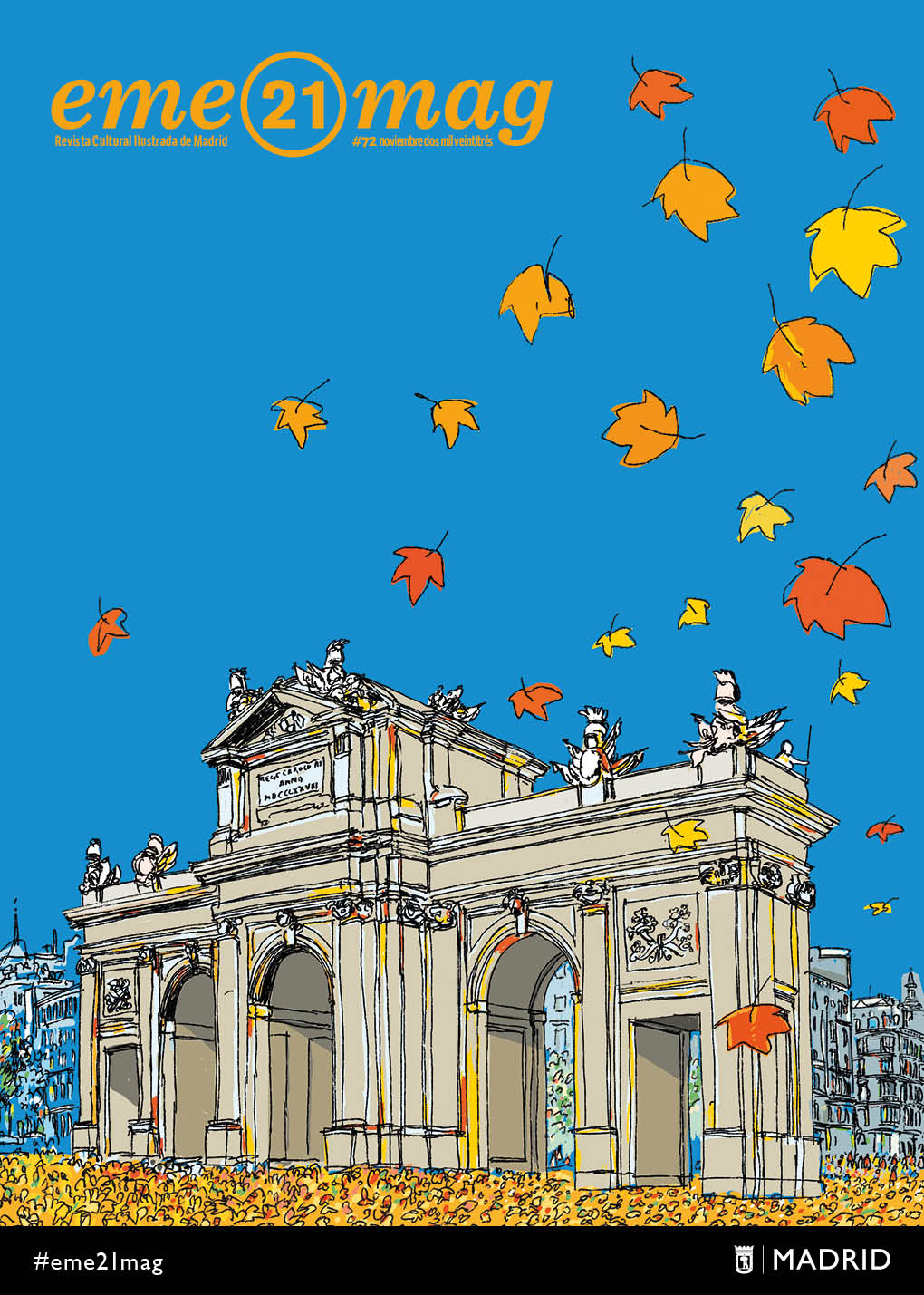 - La Puerta de Alcalá, con el cielo de Madrid de fondo, ocupa la portada de la revista con una ilustración de Jacobo Pérez-Enciso