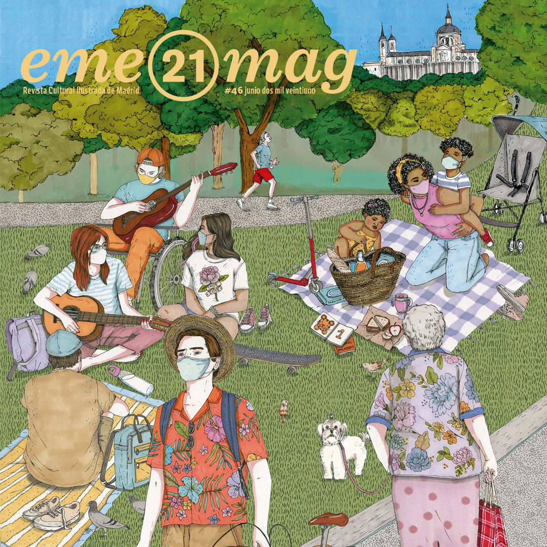 Unos contenidos englobados bajo una portada muy primaveral y a todo color ilustrada por Ana Jarén, que pone en valor la vitalidad de uno de los principales espacios verdes de ciudad, Madrid Río. Personas disfrutando de este espacio natural, paseando, tocando la guitarra, con la bici o su mascota, haciendo un picnic o practicando deporte. Una fiel estampa de la vida en la ciudad durante esta época del año.