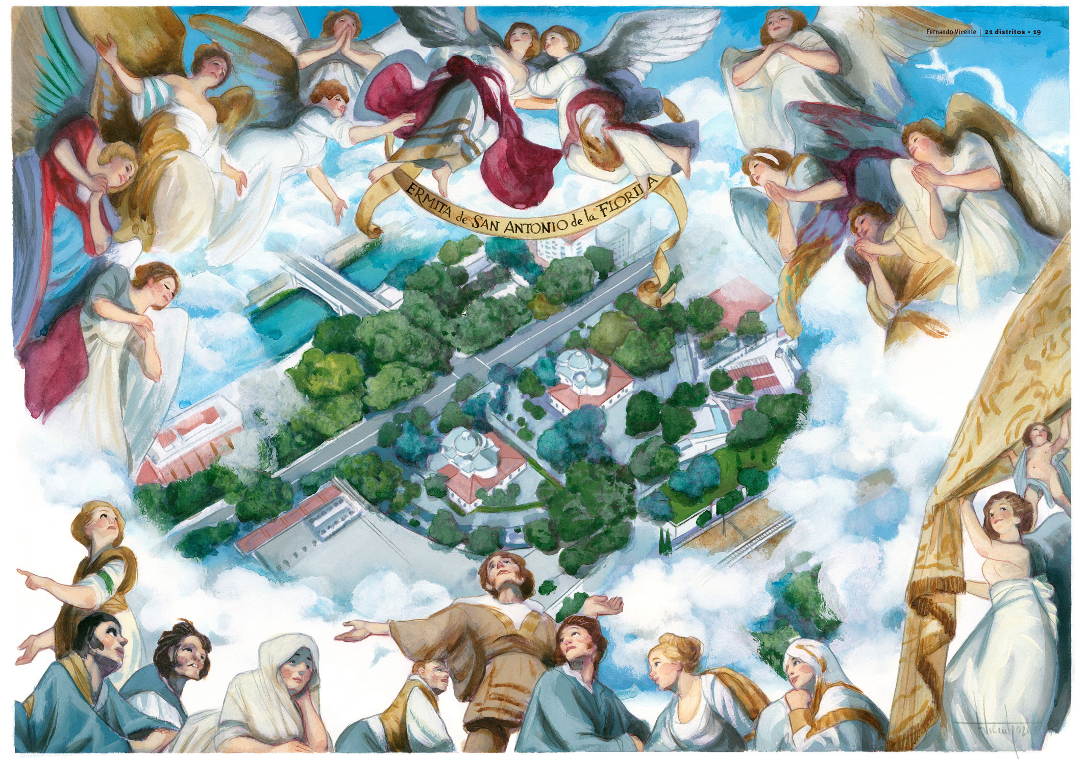 Rememorando la verbena de San Antonio, que se celebra cada 13 de junio, la revista nos acerca a uno de nuestros ilustres pintores, Francisco de Goya, cuyos frescos de la ermita de San Antonio de la Florida son epicentro de estas fiestas, en una colorida recreación de Fernando Vicente.