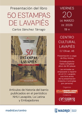 El libro '50 estampas de Lavapiés' de Carlos Sánchez Tárrago, recoge los primeros cincuenta artículos sobre la historia del barrio de Lavapiés publicados desde 2021 en el periódico mensual NHU Lavapiés, La Latina y Embajadores.