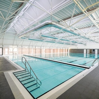 - Unidades deportivas cubiertas: pistas polideportivas, dos salas polivalentes, piscina cubierta con dos vasos -uno de 25 metros y otro de aprendizaje-, vestuarios y aseos.