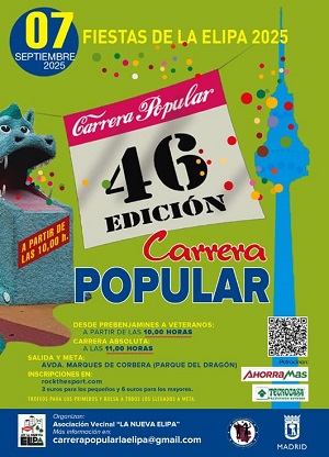 46 edición de la Carrera Popular Fiestas de la Elipa se celebrará el domingo 7 de septiembre y estará organizada por la Asociación Vecinal La Nueva Elipa.