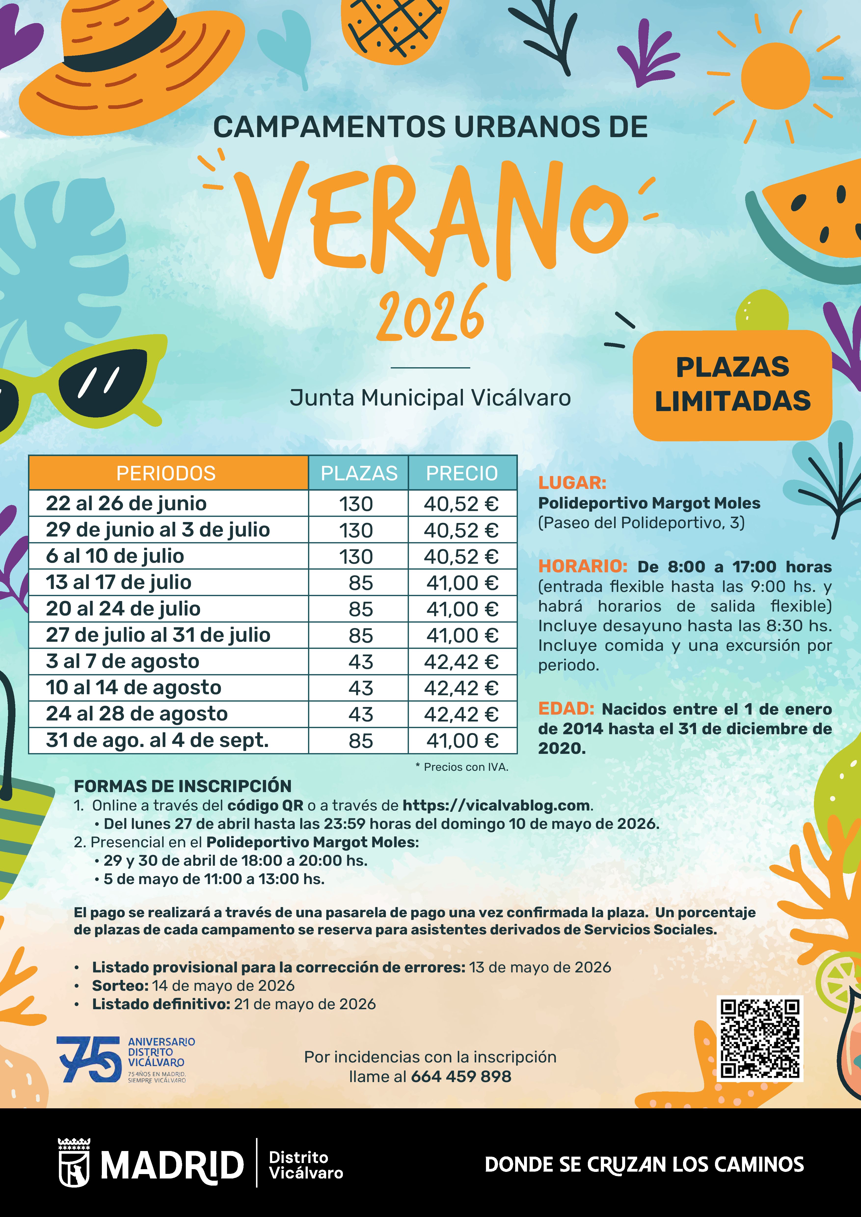 Campamentos urbanos de Vicálvaro. Verano 2026Del lunes 22 de junio de 2026 al viernes 4 de septiembre de 2026