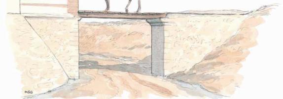 Para salvar el foso existía un puente. Se han conservado sus apoyos, los de su forma