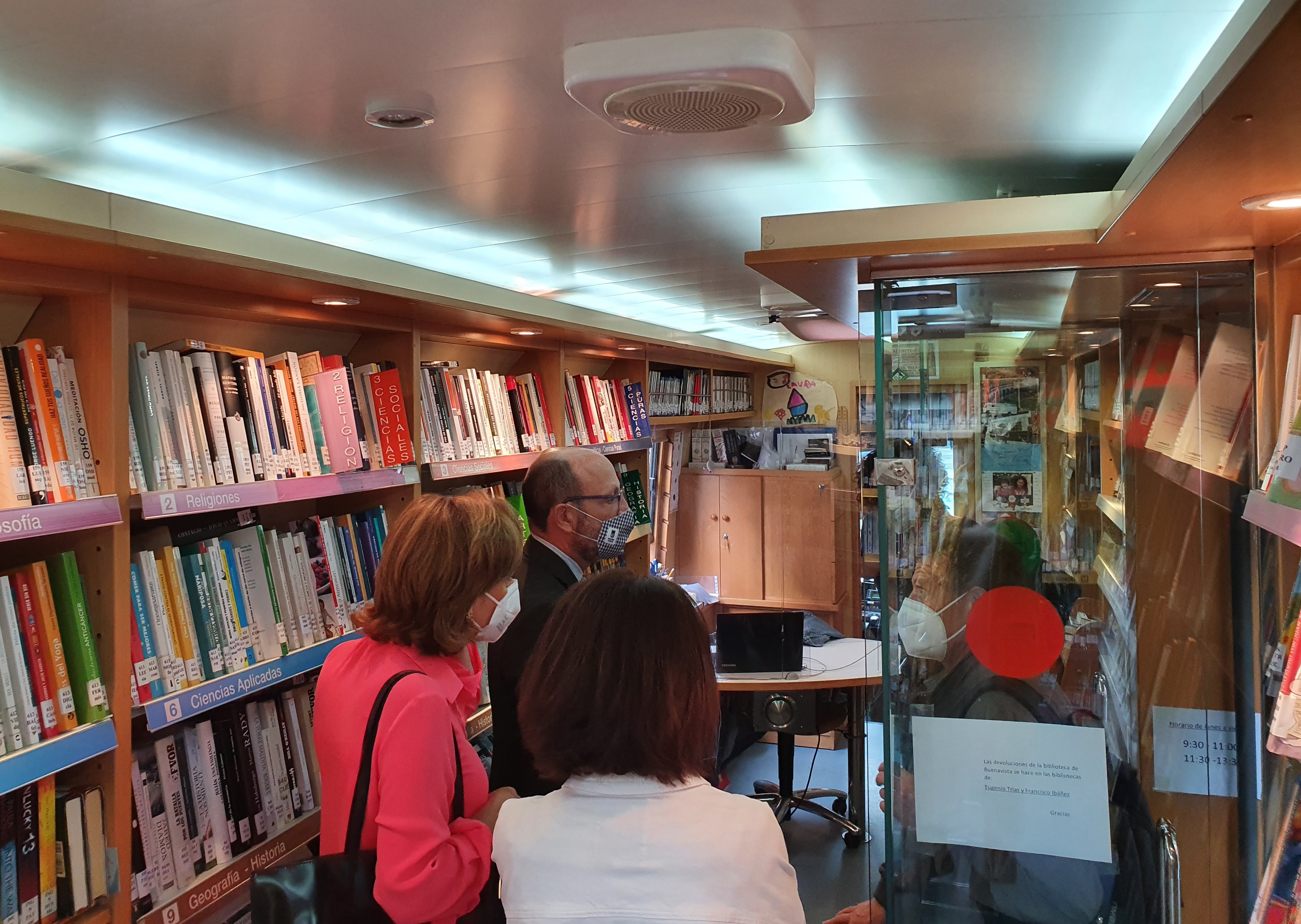 El concejal del distrito de Salamanca, José Fernández, ha visitado esta mañana los dos nuevos bibliobuses que prestan servicio en el distrito, situados en la avenida de Bruselas, 51 y en la avenida de los Toreros, 15. Cada uno de ellos cuenta con una colección de préstamo de 5.000 ejemplares y ofrece la opción de solicitar otros libros del catálogo de bibliotecas. Además, estos bibliobuses, que estarán operativos en horario de 9:30 h a 13.30 h en septiembre y de 11:30 h a 17:30 h en octubre, permiten usar carné único de bibliotecas de la Comunidad de Madrid.