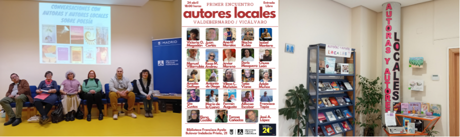 El centro de interés ‘Autoras y Autores Locales’, las ‘Conversaciones con poetas locales’ o la exposición de escritoras y escritores del barrio, así como la Guía de lectura online de sus obras, son algunos ejemplos de las actividades llevadas a cabo para fomentar la visibilidad de nuestros/as vecinos/as escritores/as.
