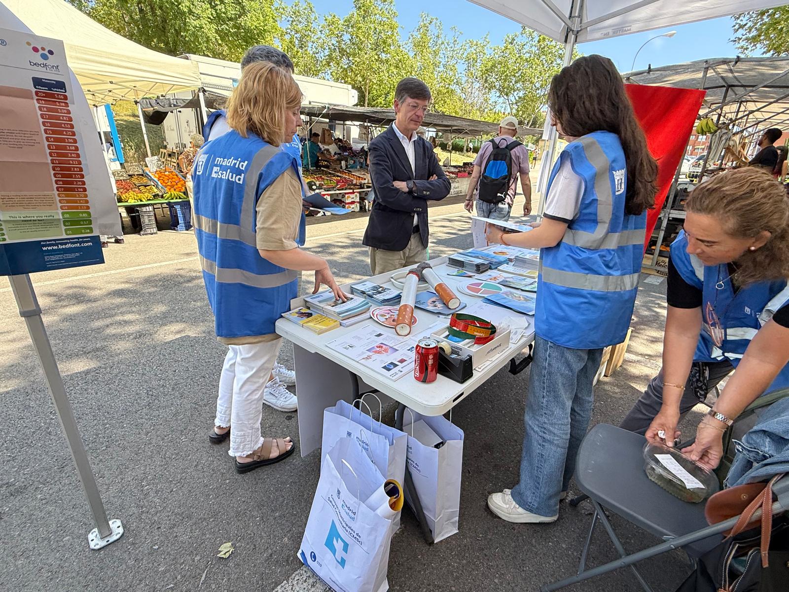 El Centro Municipal de Salud Comunitaria Fuencarral ha organizado una mesa informativa junto al Mercadillo de Santa Ana, con motivo del Día Mundial de la Nutrición. El concejal de Fuencarral-El Pardo, José Antonio Martínez Páramo, ha visitado la mesa, donde los profesionales del centro sanitario del distrito han informado a los vecinos que se han acercado sobre cómo llevar una dieta saludable.