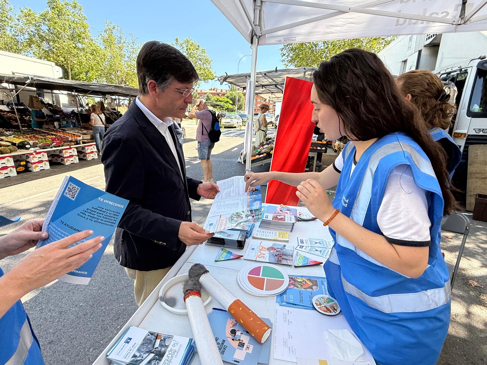 El concejal de Fuencarral-El Pardo, José Antonio Martínez Páramo, en la mesa informativa del Día Mundial de la Nutrición