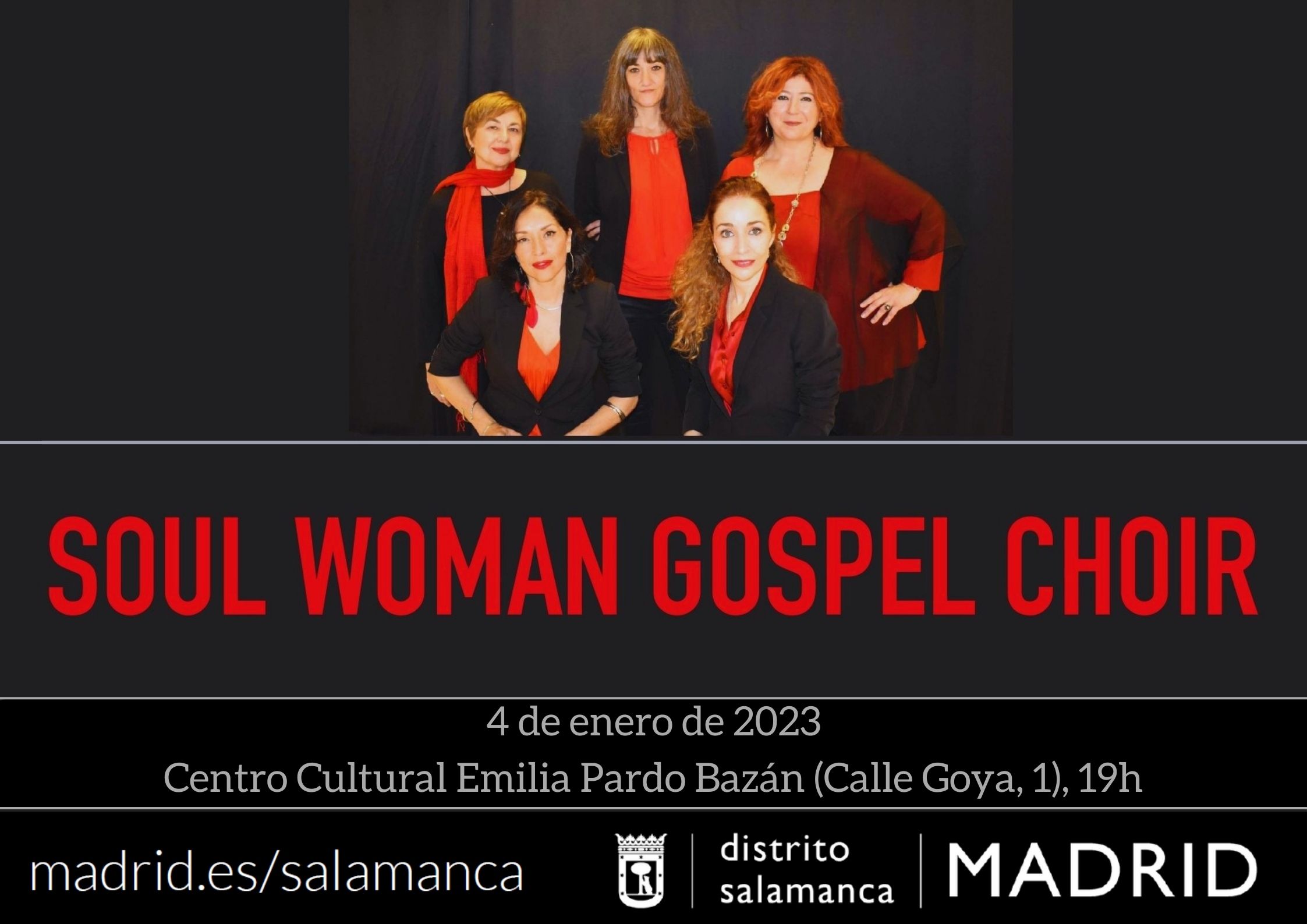 Posteriormente, las instalaciones del Centro Cultural Emilia Pardo Bazán acogerán el último concierto gratuito del XXIV Festival de Música de Navidad del distrito de Salamanca. A partir de las 19:00 h, la formación Soul Woman Gospel Choir transmitirá la pasión, alegría, amor y esperanza que destilan las músicas del mundo en unas fechas como estas.