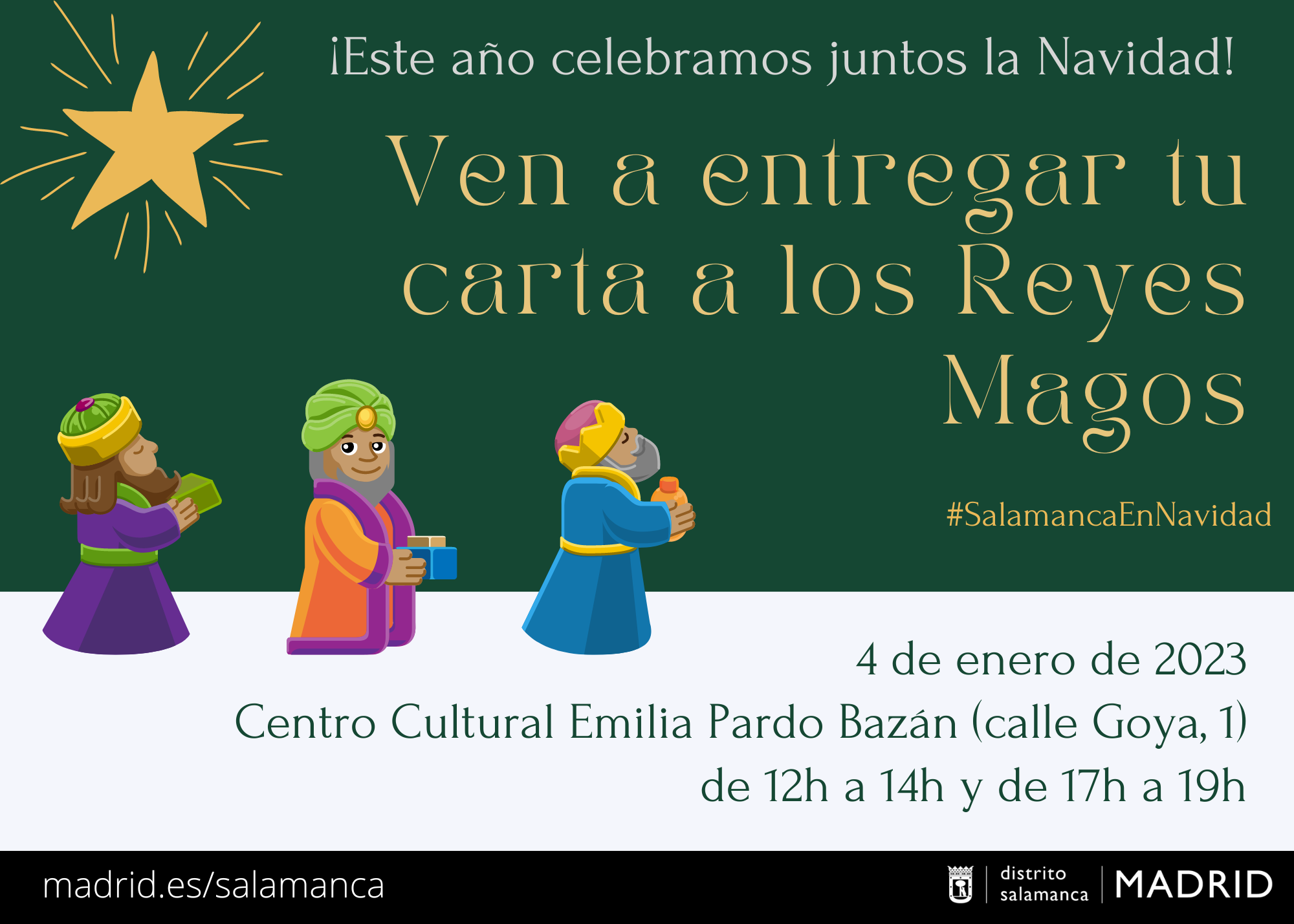 A todos aquellos, grandes o pequeños, que todavía no hayan echado su carta al buzón para que sus deseos lleguen a Melchor, Gaspar y Baltasar, la Junta Municipal del Distrito de Salamanca les da la oportunidad de entregarla en mano a uno de los tres Reyes Magos.