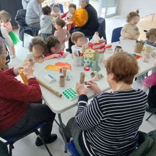 Talleres de instrumentos musicales con el barrioCon motivo de los carnavales, en la Escuela Infantil Sabina invitamos a las personas mayores del Centro de Día y a las familias de nuestro alumnado para crear juntos instrumentos musicales con materiales de desecho. Fue emocionante ver cómo los niños y niñas, acompañados por sus mayores, daban vida a cada pieza que luego utilizaron en el desfile del barrio.