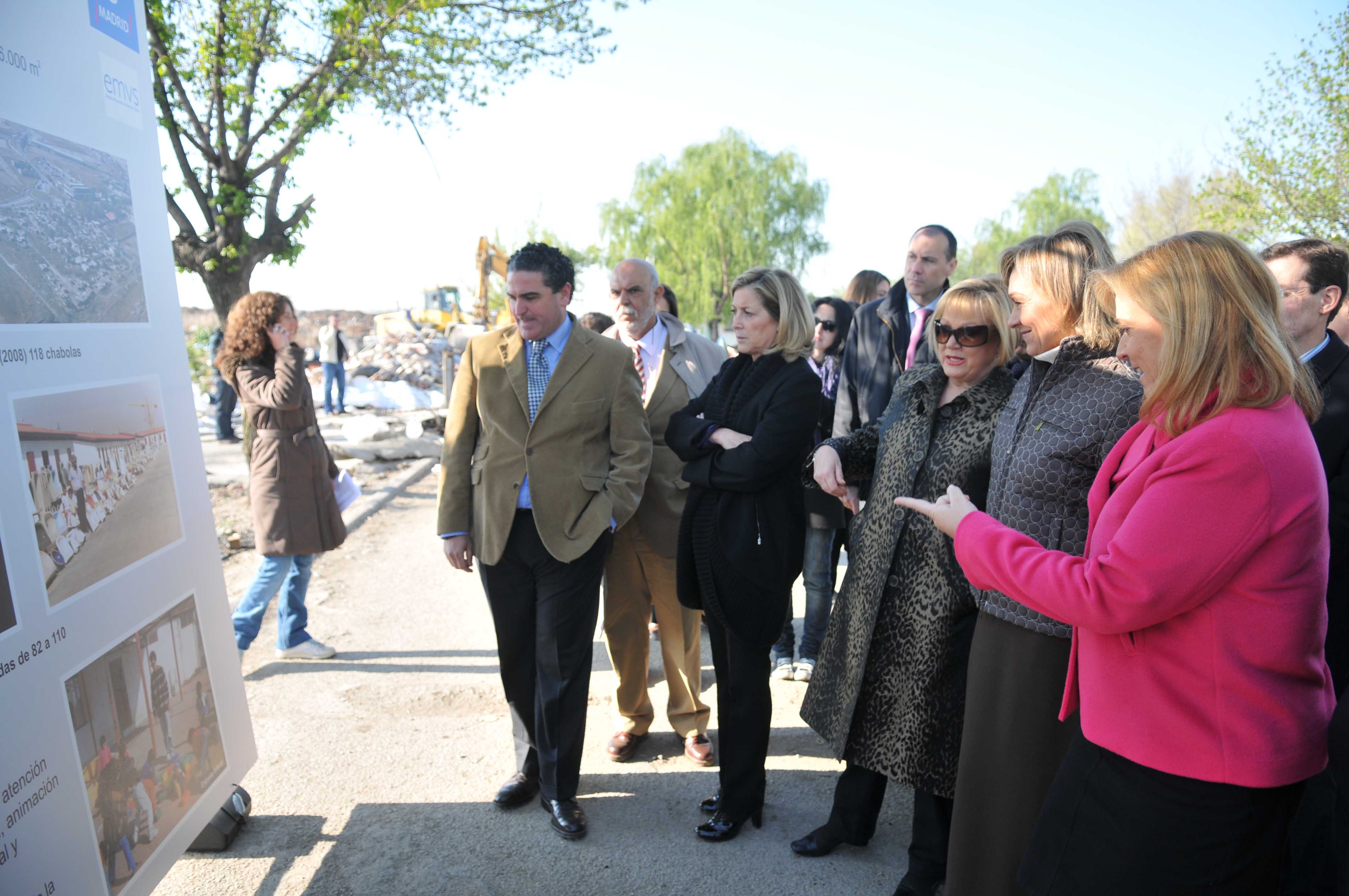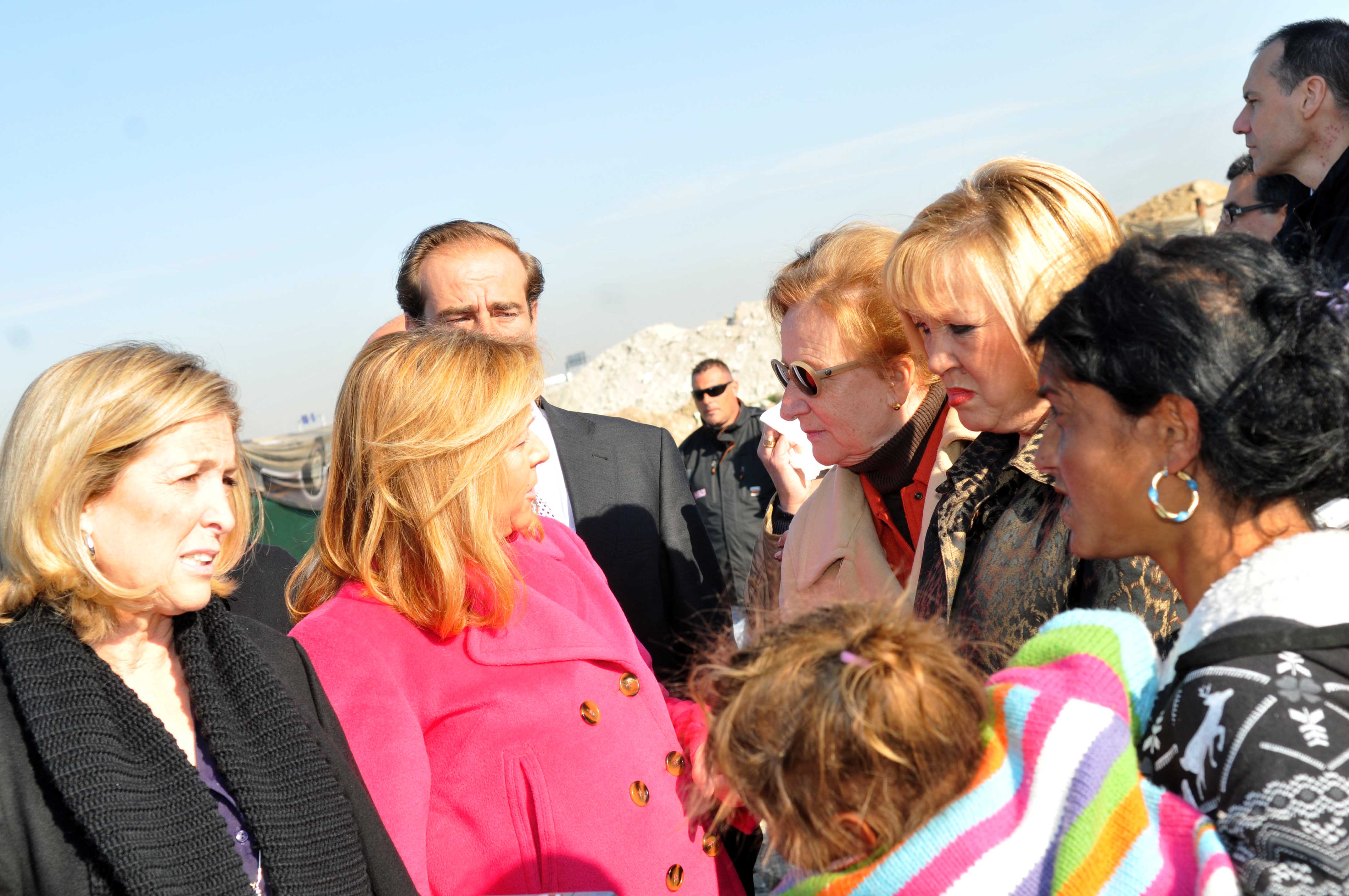 Hoy ha comenzado el desmantelamiento de las últimas chabolas del poblado de El Cañaveral al que han asistido la delegada de Urbanismo y Vivienda del Ayuntamiento, Pilar Martínez; la delegada de Famila y Servicios Sociales, Concepción Dancausa, y la consejera de Medio Ambiente, Vivienda y Ordenación del Territorio de la Comunidad de Madrid, Ana Isabel Mariño.