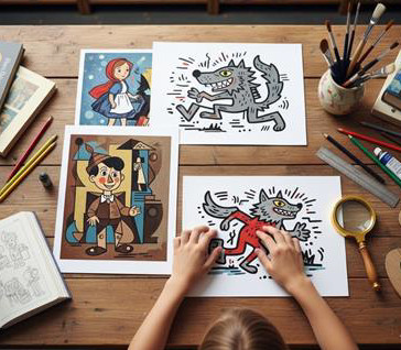 Art Stories. ¿Cómo sería Caperucita Roja si la pintara Picasso?¿Y si Van Gogh ilustrara El patito feo?A partir de ejemplaresde cuentos infantiles ilustrados por grandes artistas y fascinantes reinterpretaciones generadas por IA, redescubriremos algunos cuentos clásicos ilustrados en el estilo de grandes artistas de la Historia del Arte. Después, podrás crear tu reinterpretación personal inspirándote en el estilo de uno de los artistas propuestos. Un taller creativo sorprendente en donde probar diferentes técnicas artísticas y disfrutar de grandes obras literarias.