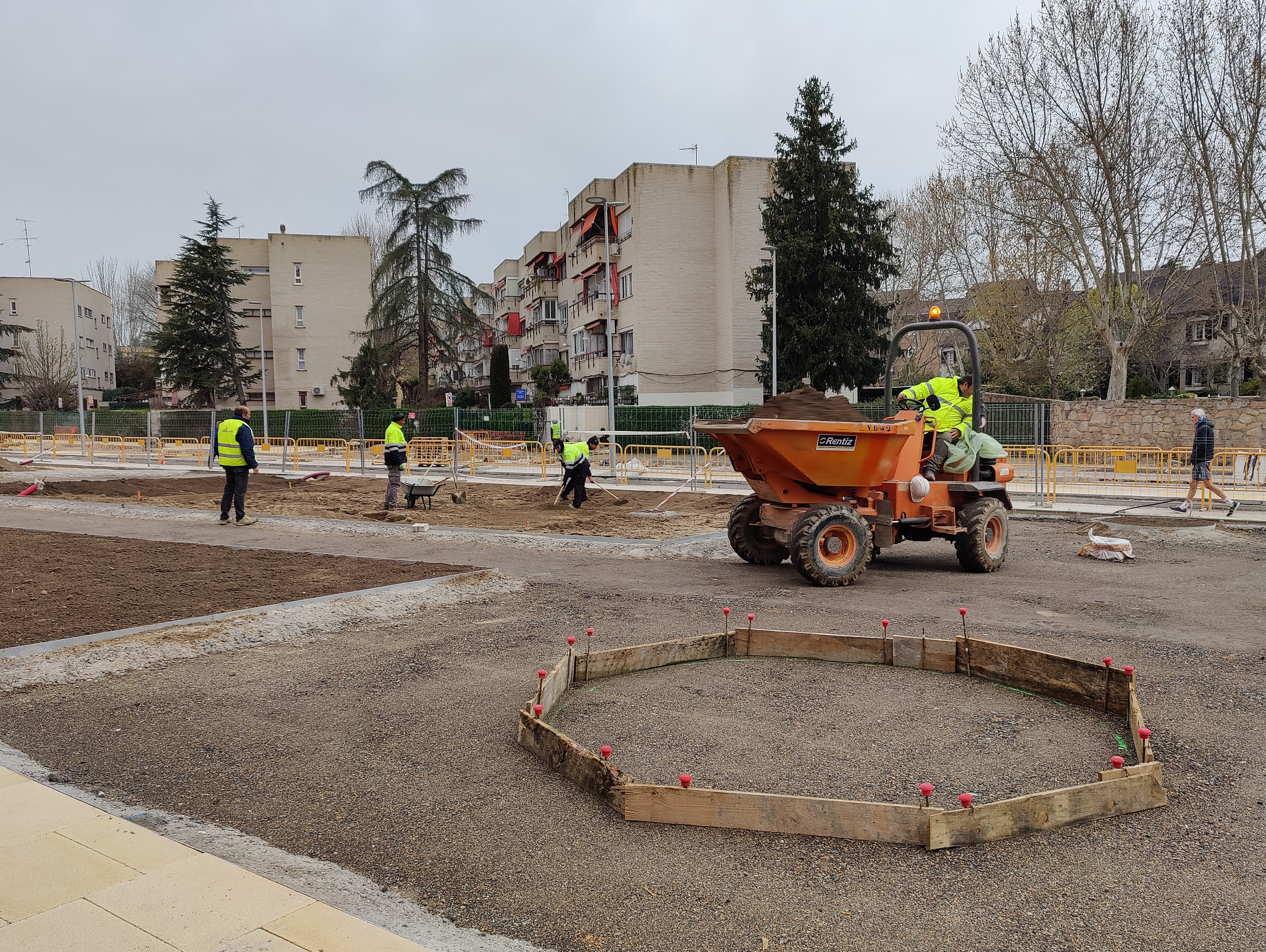 La delegada de Obras y Equipamientos, Paloma García Romero, ha visitado hoy junto a la concejala de Barajas, Sofía Miranda, los trabajos de reurbanización que se están realizando en las calles La Rioja y posterior a Canoa, en el tramo comprendido entre Joaquín Ibarra y Carabela, espacio conocido como ‘Vía de la Gasolina’. La finalización de la actuación está prevista para antes del verano, a expensas de la evolución del paro en el sector del transporte, y supondrá la culminación de un proyecto largamente demandado por los vecinos que a partir de la segunda mitad del año podrán hacer uso de este espacio en óptimas condiciones.