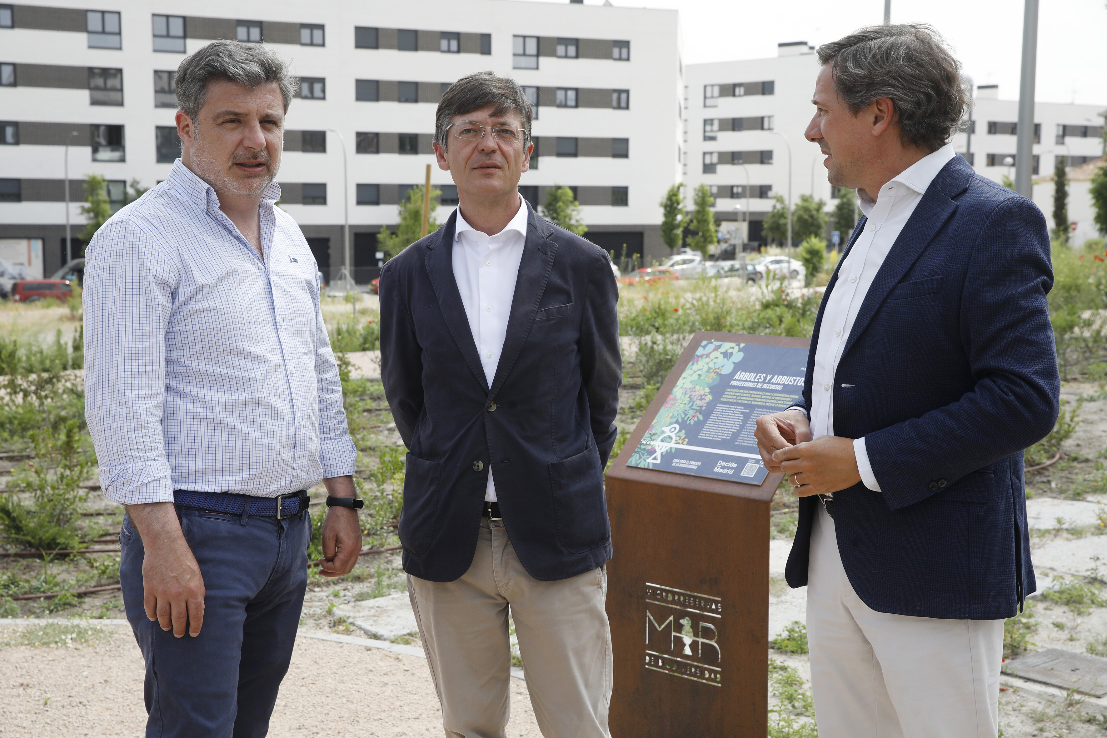 El concejal delegado de Limpieza y Zonas Verdes, José Antonio Martínez Páramo, y el concejal de Barajas, Juan Peña, han inaugurado este viernes el nuevo jardín mediterráneo didáctico creado en el distrito. Este espacio verde, ubicado entre las calles Géminis y Orión, forma parte de la estrategia municipal para fomentar la biodiversidad en calles y espacios verdes de la ciudad, con el objetivo de hacerla más natural, habitable y, sobre todo, saludable.