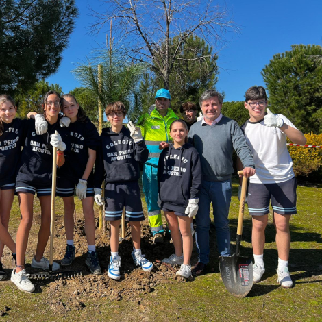 La Junta y escolares de Barajas celebran el Día del Árbol plantando 40 ejemplaresLa Junta Municipal de Barajas ha celebrado hoy el Día del Árbol con la plantación de 40 ejemplares —30 pinos piñoneros y 10 moreras sin frutos— en la zona verde junto al área infantil de la calle de Alcañiz. Han participado en la actividad 75 alumnos de 1º de ESO del Colegio San Pedro Apóstol.