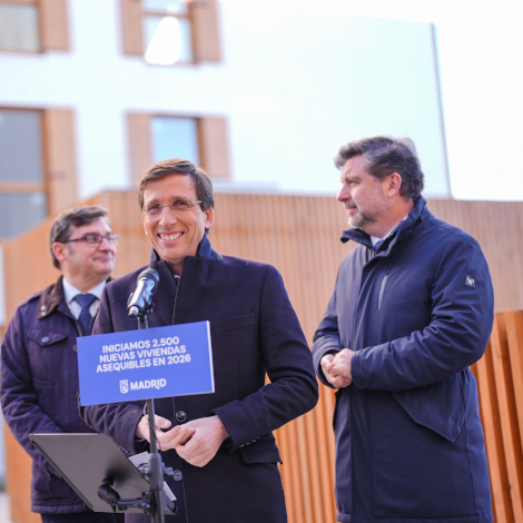 Almeida anuncia que EMVS Madrid iniciará las obras de 2.500 nuevas viviendas para alquiler asequible en 2026El Ayuntamiento de Madrid, a través de la Empresa Municipal de la Vivienda y Suelo de Madrid (EMVS Madrid), iniciará las obras de 2.500 nuevas viviendas para alquiler asequible en 2026. Así lo ha anunciado el alcalde de la capital, José Luis Martínez-Almeida, quien ha detallado que, en total, la empresa municipal pondrá en marcha 22 nuevas promociones ubicadas en los distritos de Barajas, Carabanchel, Fuencarral-El Pardo, Moncloa-Aravaca, Vicálvaro y Villa de Vallecas. De ellos, 1.600 pisos pertenecen a la primera fase del Plan Suma Vivienda de EMVS Madrid.