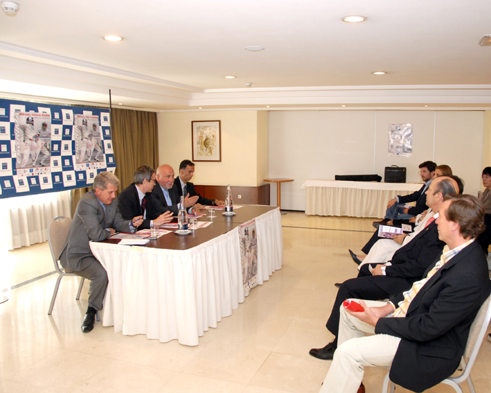 El concejal de Barajas, Tomás Serrano, ha presentado el XXIX Trofeo Villa de Madrid de Esgrima, la Copa del Mundo de Sable. que se disputa los días 22 y 23 de mayo en el distrito de Barajas por quinta vez consecutiva. Este año, como novedad, se va retransmitir en directo, el domingo 23, la competición a través del canal temático de deportes en internet 'televeo.es'. Jorge Pina, campeón de Europa, y Jaime Martí, medalla de bronce en la última edición del Villa de Madrid, están en el 'top ten' del ránking mundial de sable y podrían optar a una plaza en el podio. En el acto de presentación, Serrano estuvo acompañado por el presidente de la Federación Española de Esgrima, Marco Rioja; Antonio Guerrero, representando a la consejería de Deportes de la Comunidad de Madrid y Fernando Peña, Presidente de la Federación Madrileña de Esgrima.