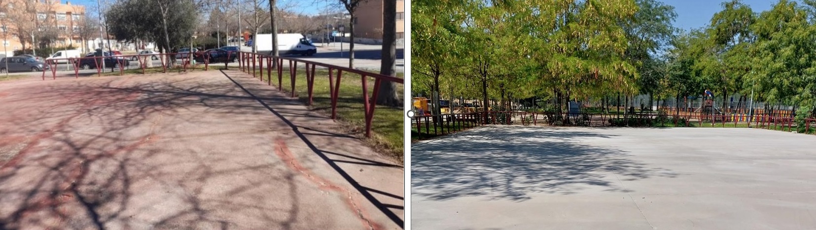 Imágenes del antes y después de la obra y de la visita del concejal de Carabanchel, Carlos Izquierdo