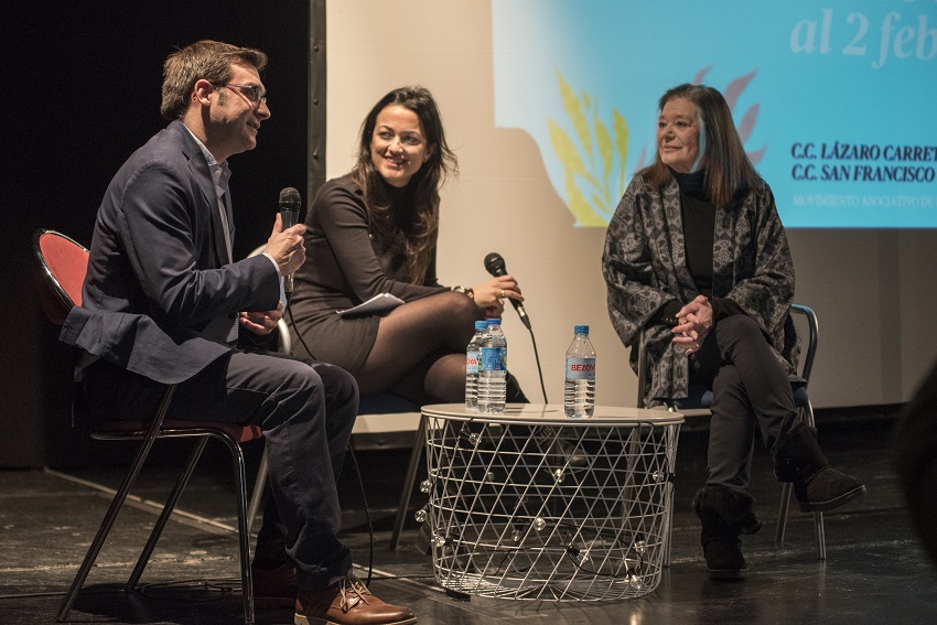 Teresa Rabal y el concejal del distrito, Álvaro González, participaron en el coloquio sobre la vida de la artista que se celebró en el Centro Cultural Lázaro Carreter