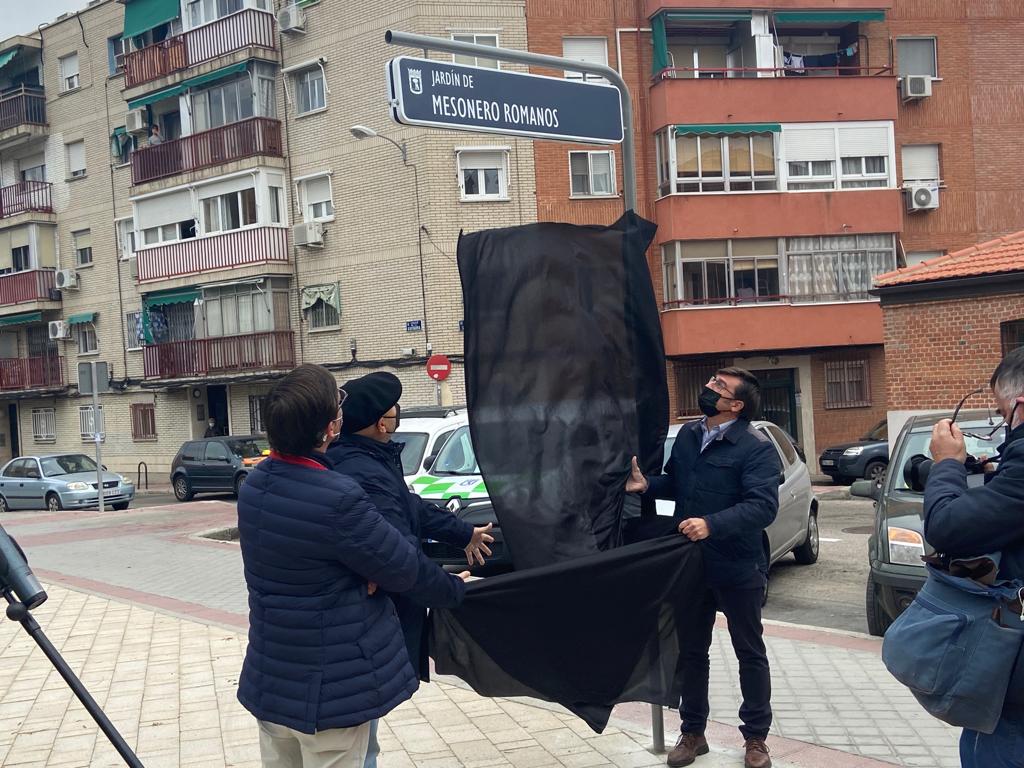 Mesonero Romanos tiene desde hoy un jardín con su nombre en Carabanchel. El concejal del distrito, Álvaro González, acompañado de varios ediles de la Corporación madrileña y del cronista de la Villa de Madrid Constantino Mediavilla, ha descubierto esta mañana la placa en el lugar donde se encontraba la finca de recreo que el escritor y periodista poseía en el distrito. Así, se da cumplimiento a la aprobación del pleno de la Junta Municipal de Carabanchel del 18 de enero para denominar una zona verde, ubicada en la calle de la Guitarra con la calle de Polvoranca, con el nombre de este autor del siglo XIX.