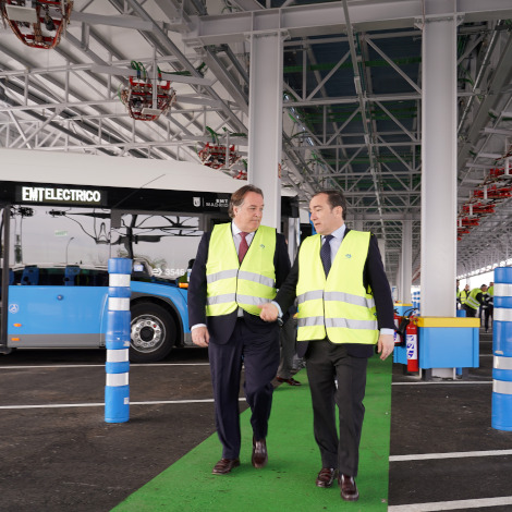 EMT Madrid avanza en la electrificación del Centro de Operaciones de Carabanchel, un proyecto innovador y único en EuropaEl delegado de Urbanismo, Medio Ambiente y Movilidad, Borja Carabante, acompañado por el gerente de la Empresa Municipal de Transportes (EMT Madrid), Alfonso Sánchez, ha visitado esta mañana las obras de la nueva estación de carga eléctrica por pantógrafo invertido en el centro de operaciones de Carabanchel. EMT Madrid pondrá en marcha esta infraestructura, que permitirá la recarga de 118 autobuses eléctricos de forma simultánea. Tras la puesta en marcha de esta instalación, el centro de operaciones contará con un total de 260 puntos de recarga eléctrica.