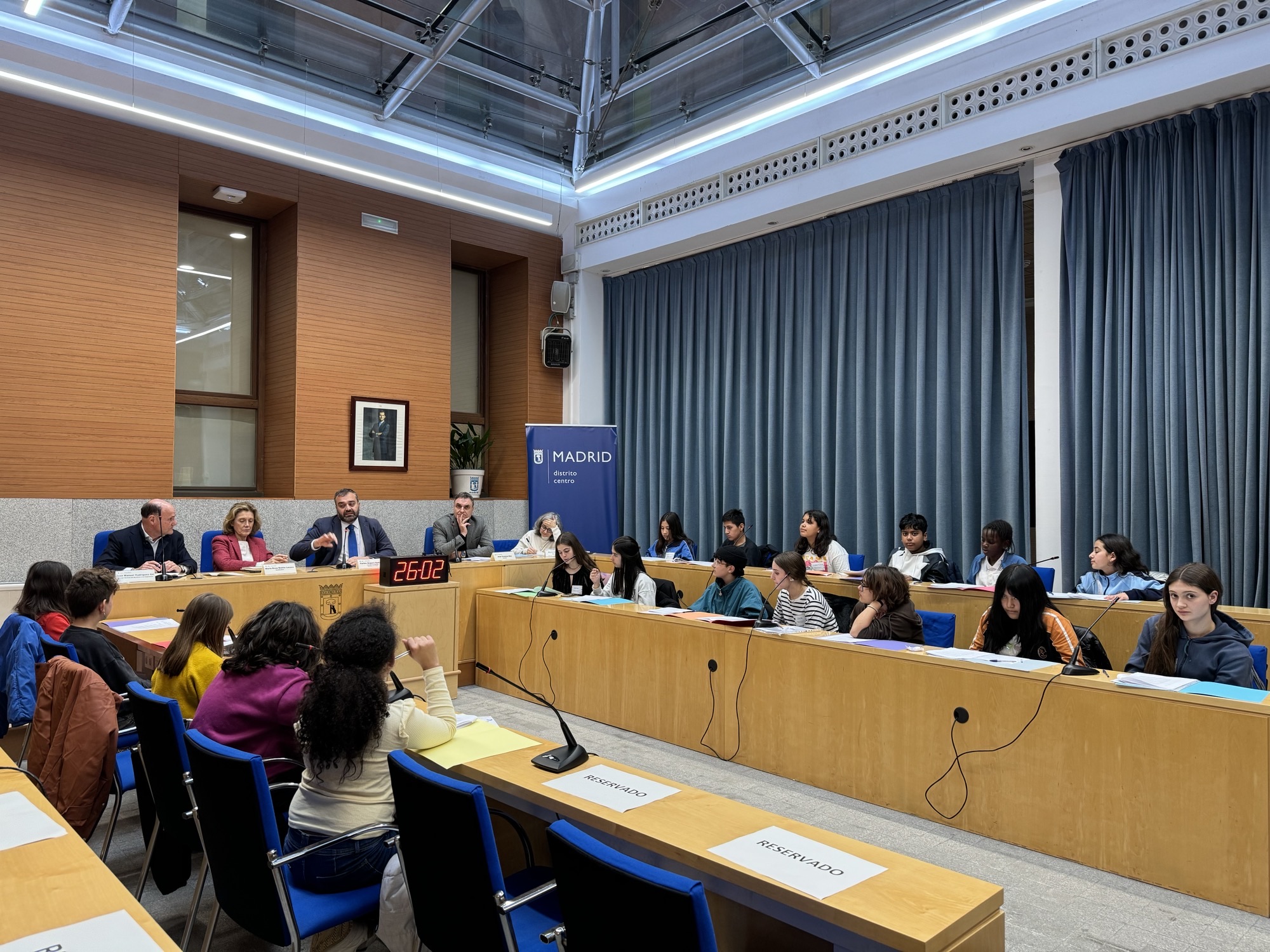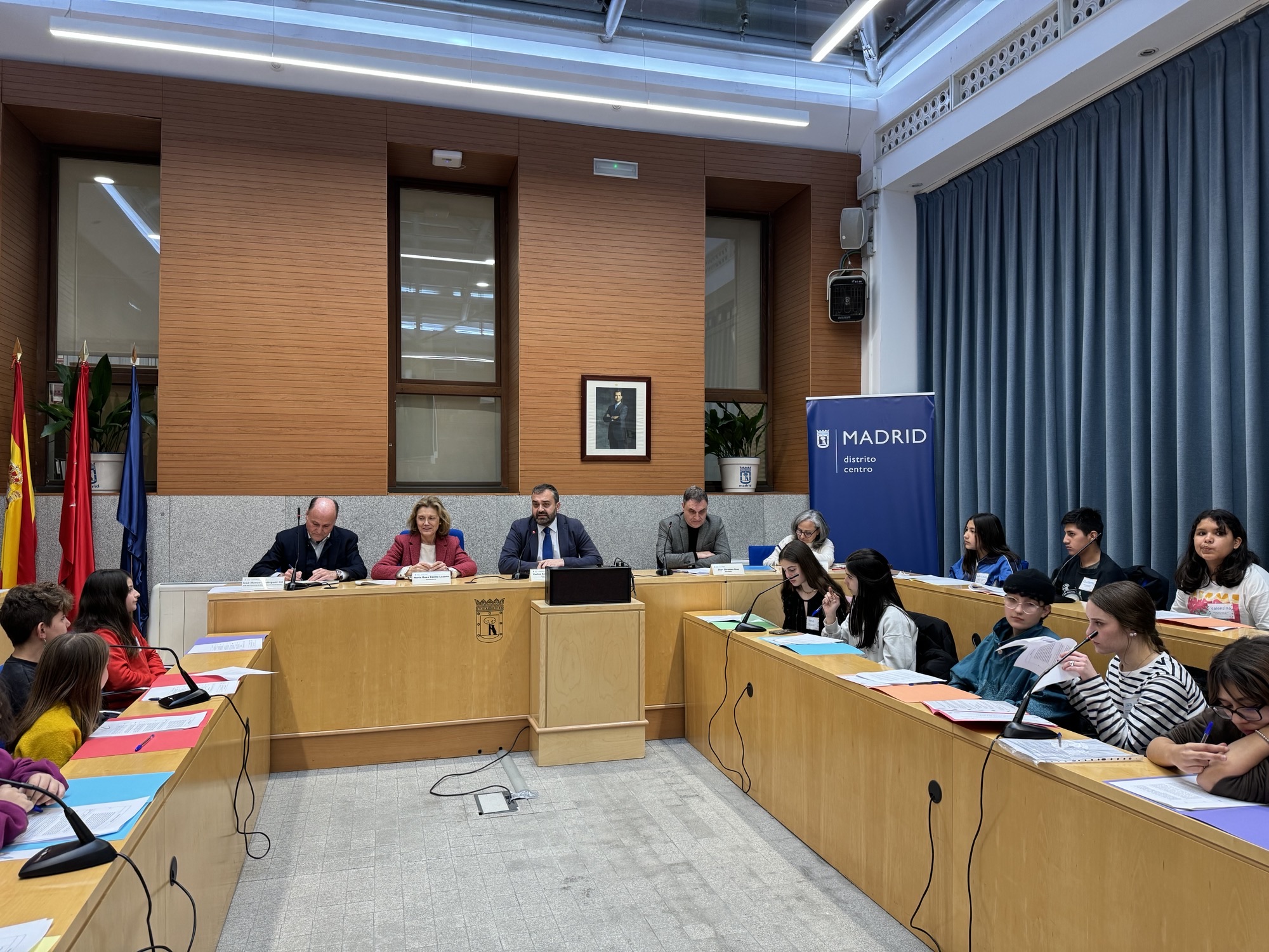 La Junta Municipal de Centro ha celebrado el Pleno Infantil y Adolescente del distrito, en el que han participado 27 menores, alumnos de cuatro centros educativos y de distintas entidades y asociaciones: los CEIP La Paloma y Pi i Margall, los IES Santa Teresa y Cardenal Cisneros, además de integrantes de las asociaciones PAIDEIA y Equipo de Orientación Familiar (EOF), así como del programa educativo musicosocial DaLaNota.