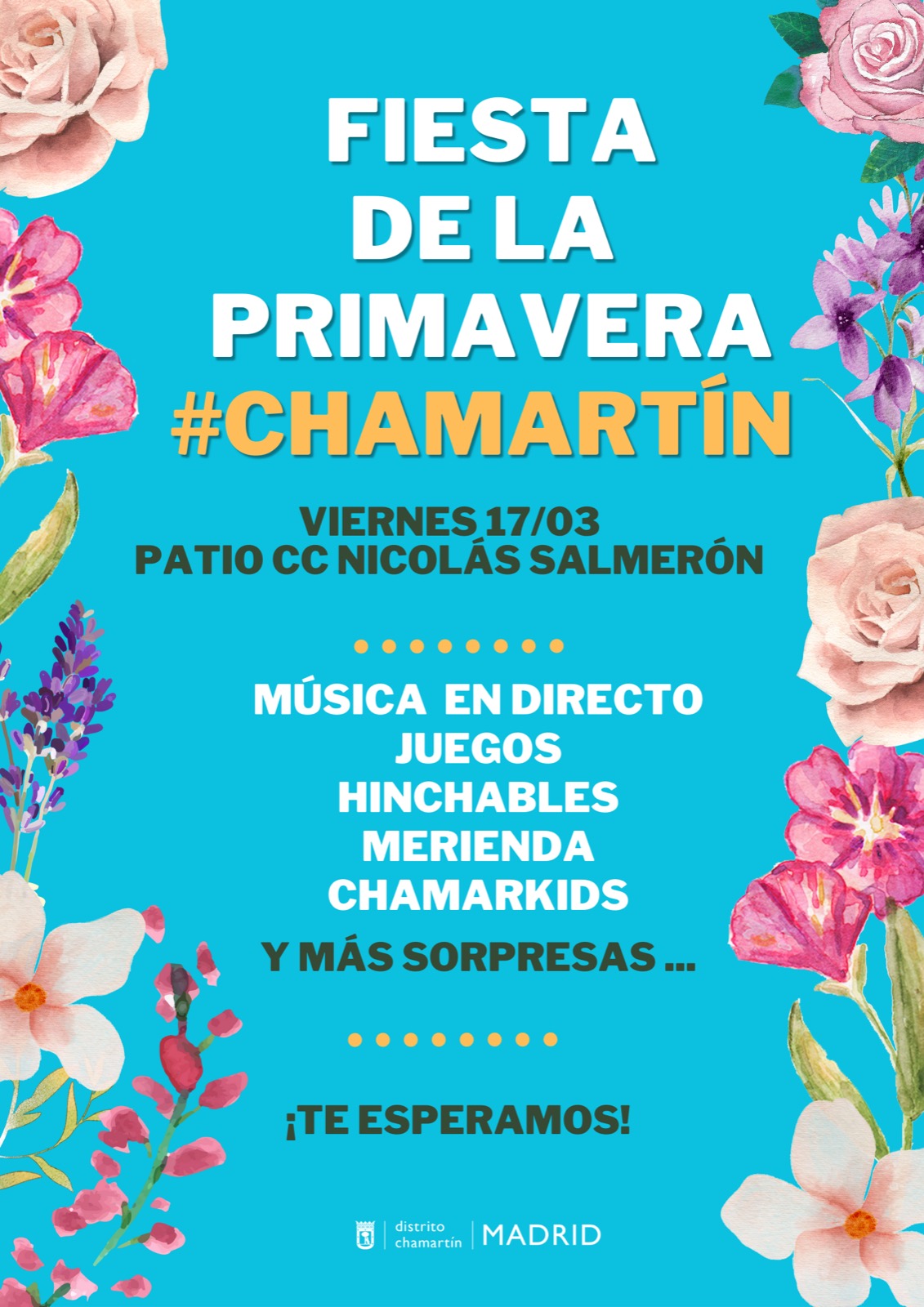 La Junta Municipal de Chamartín celebra la llegada de la primavera con una verbena familiar en el nuevo patio del Centro Cultural Nicolás Salmerón, donde esta tarde, de 17:30 h a 19:30 h, habrá espectáculo infantil con música en directo, juegos tradicionales, hinchables y merienda.