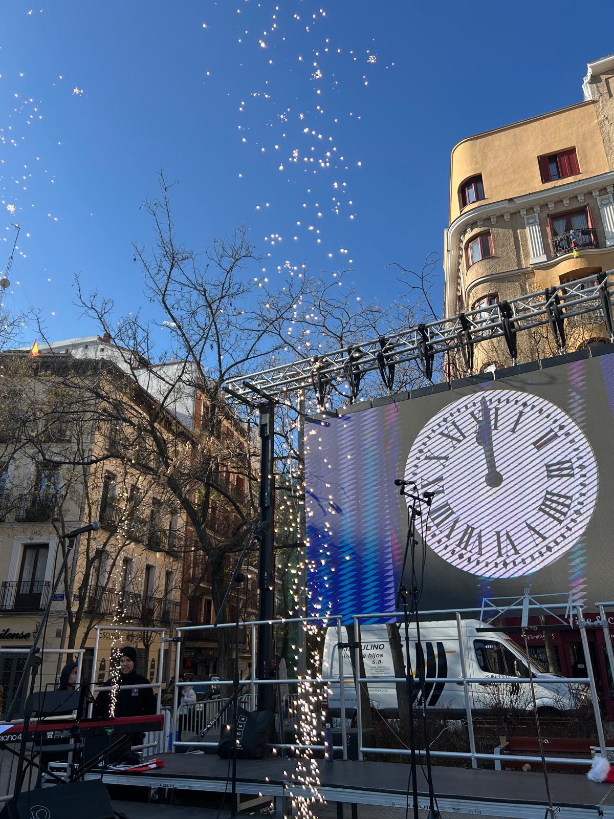 El distrito de Chamberí ha celebrado este miércoles las preúvas en la plaza de Olavide, organizadas por la junta municipal como novedad de la programación navideña de este año para promover la convivencia vecinal en el espacio público.
